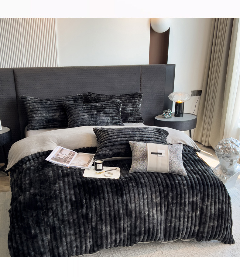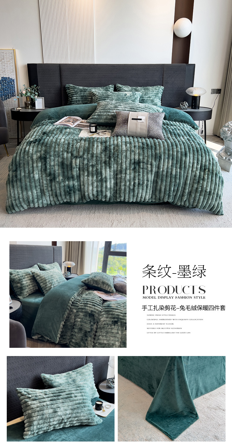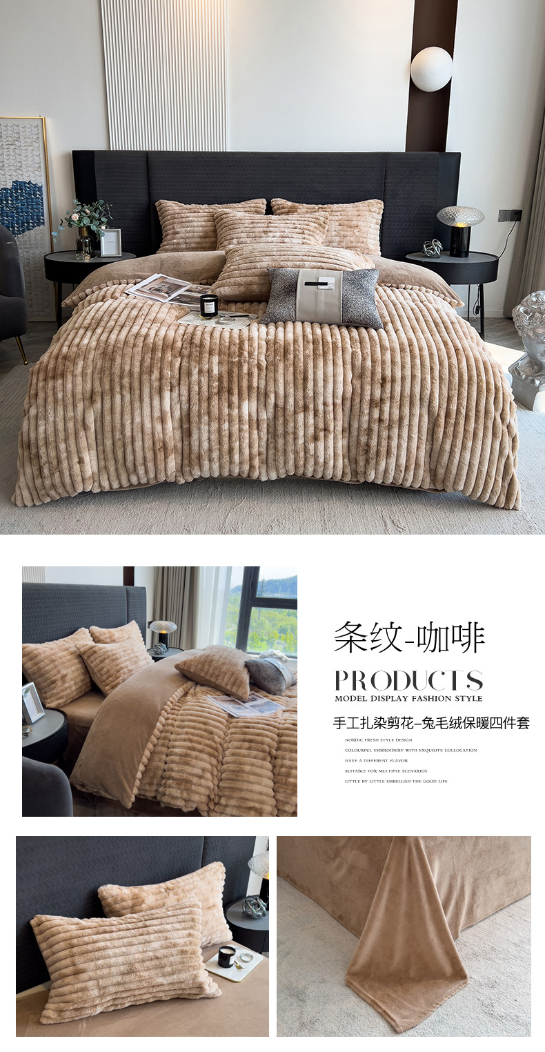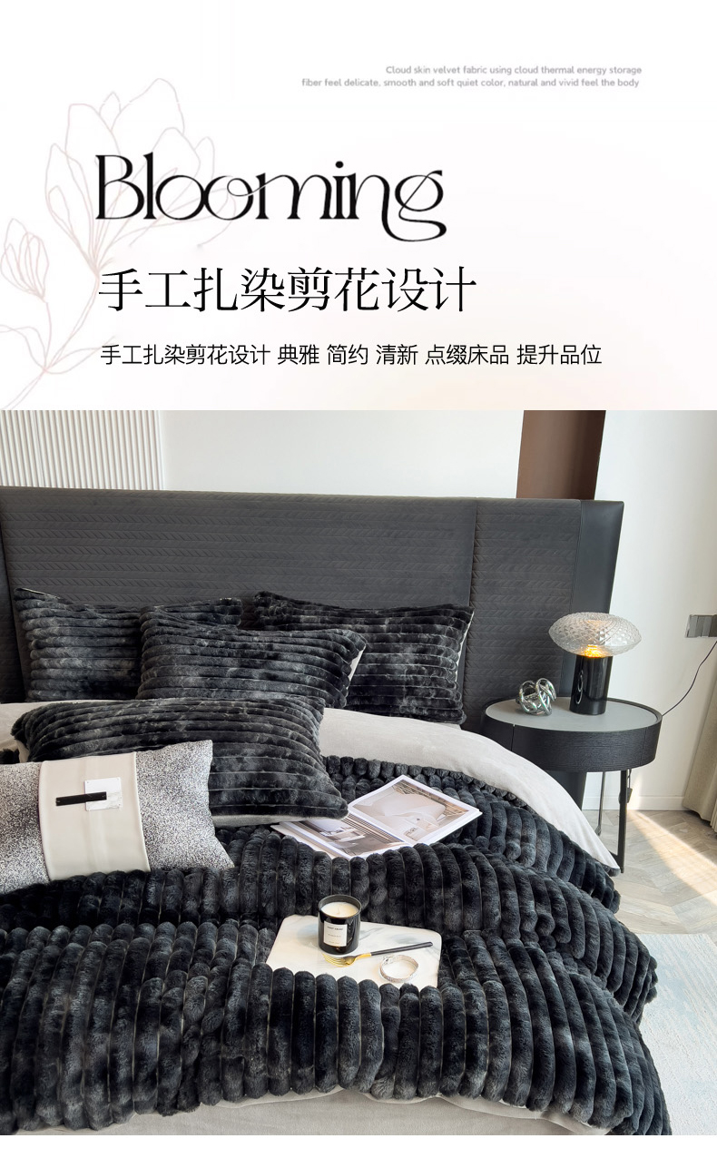 当前位置: 91家纺网 > 商品网购 > 床品套件 > 四件套 > 兔毛绒四件套 > 印季家纺 2025新款手工扎染剪花兔毛绒四件套 条纹-黑金