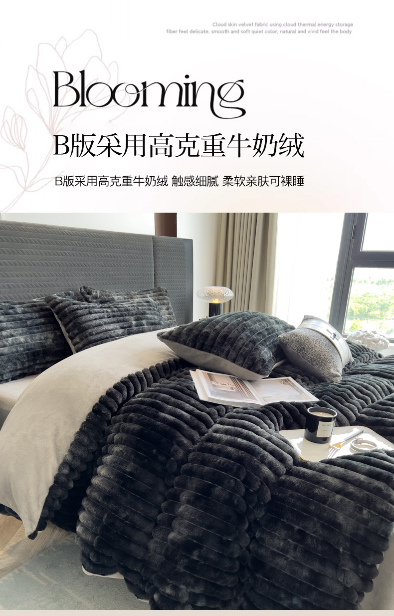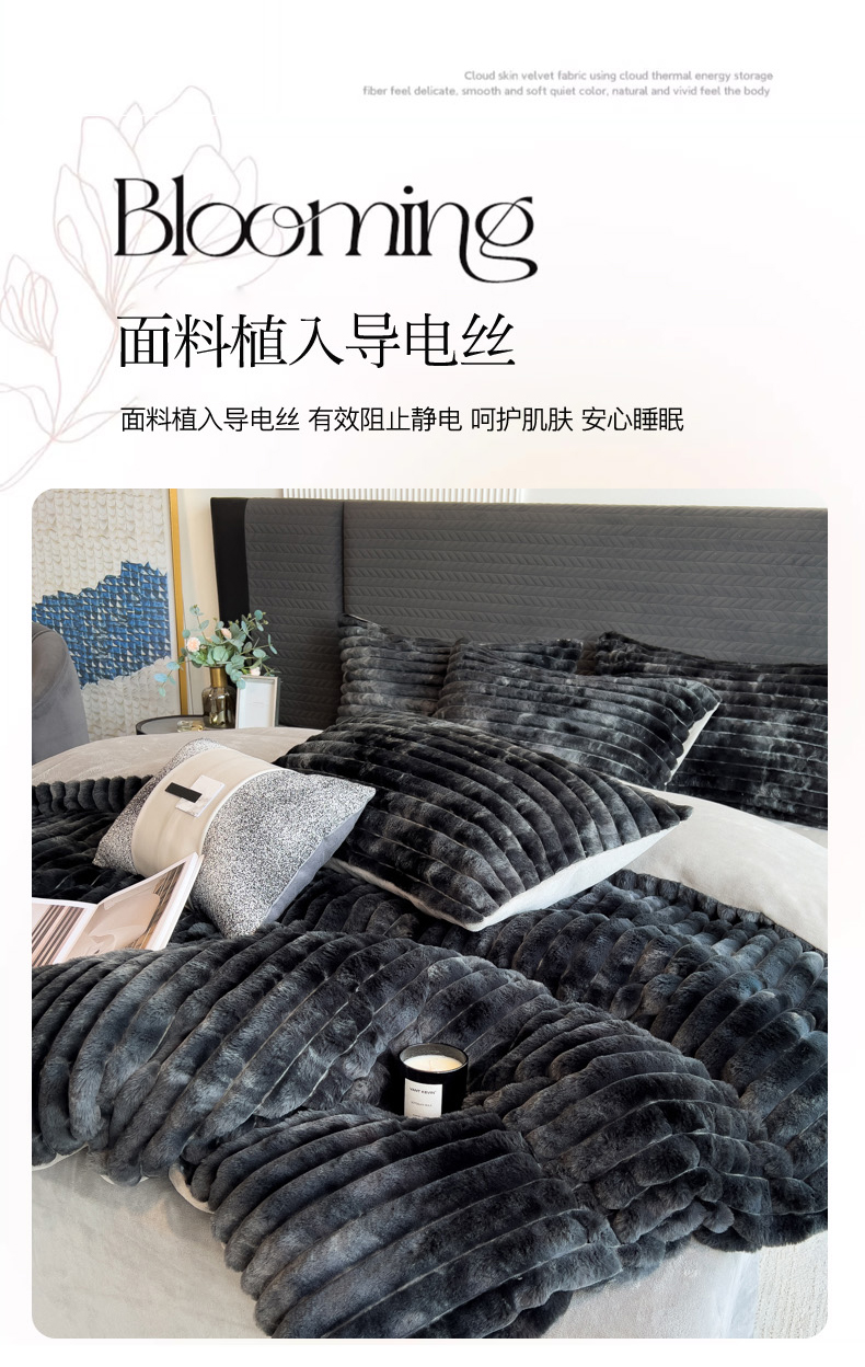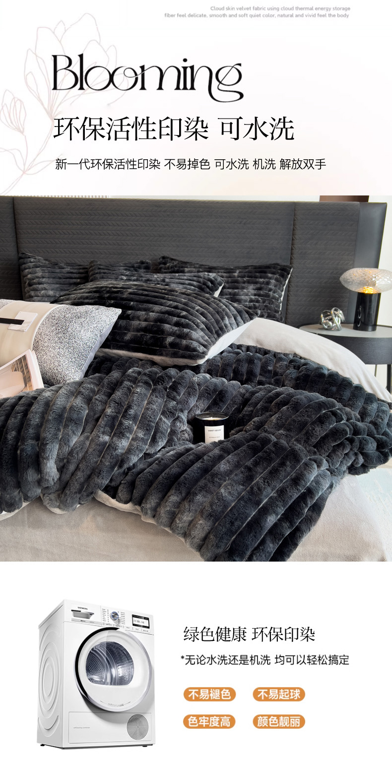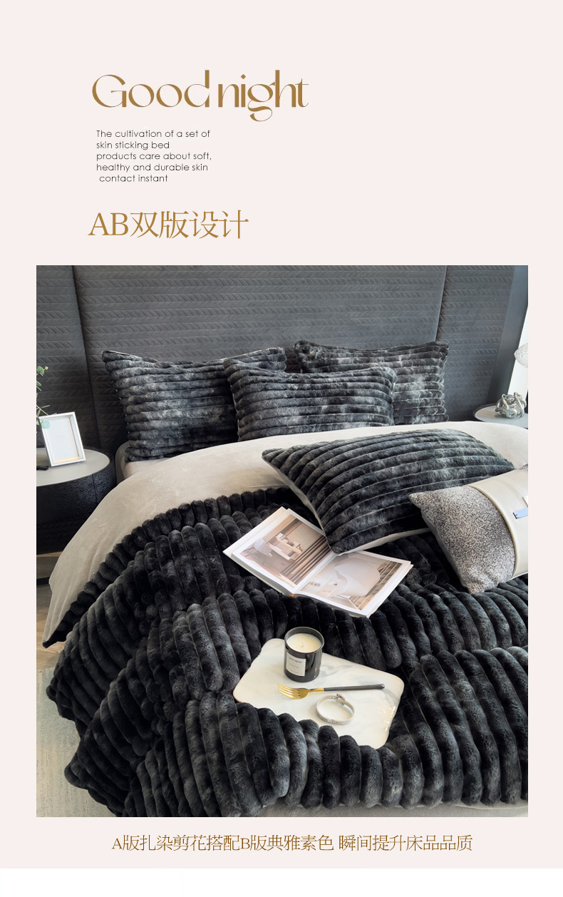 当前位置: 91家纺网 > 商品网购 > 床品套件 > 四件套 > 兔毛绒四件套 > 印季家纺 2025新款手工扎染剪花兔毛绒四件套 条纹-黑金