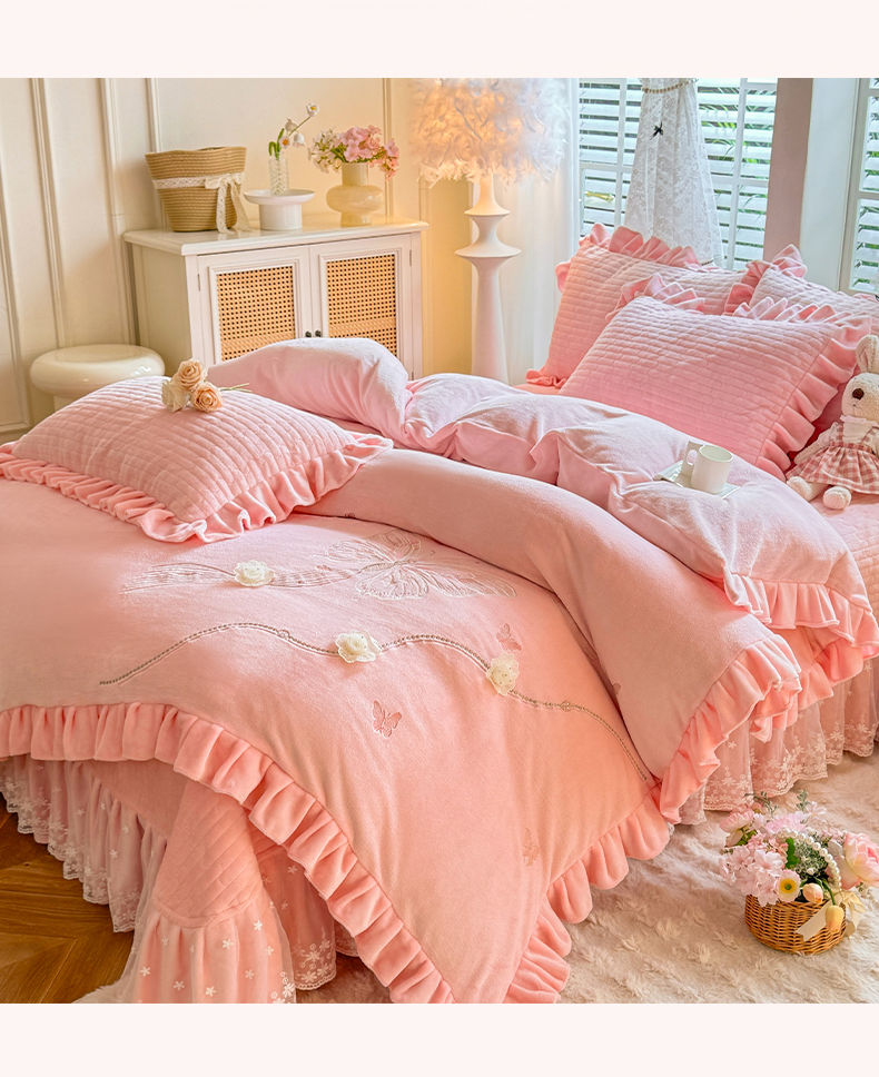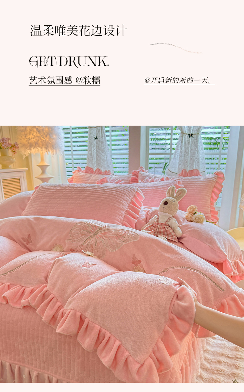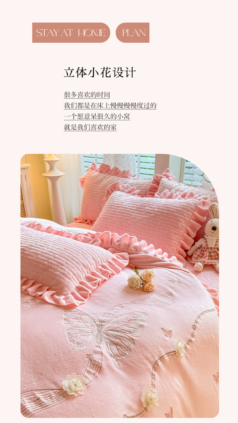 (总)唐人居 2025新款高克重牛奶绒花边夹棉四件套-蝴蝶纷飞,蝴蝶纷飞-浅蓝,蝴蝶纷飞-豆沙,蝴蝶纷飞-浅紫,蝴蝶纷飞-暖橘,蝴蝶纷飞-粉色,蝴蝶纷飞-草绿