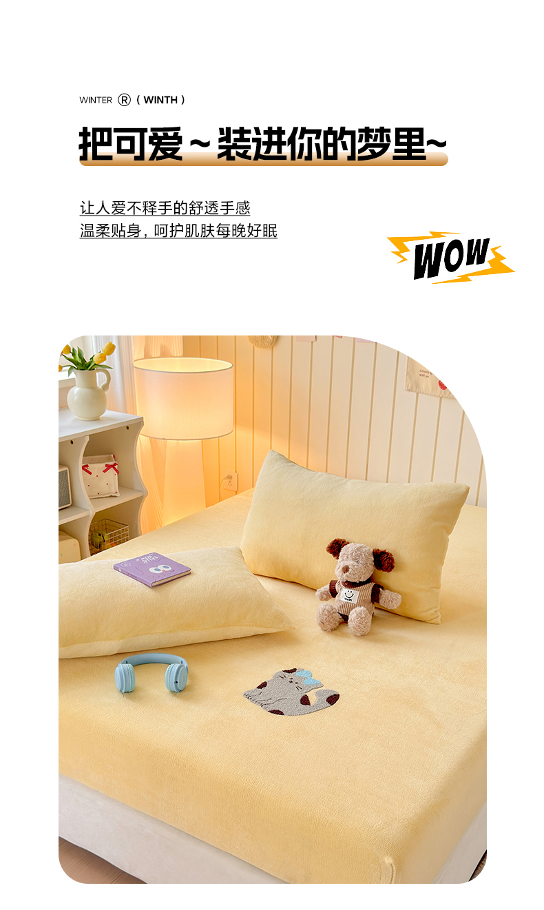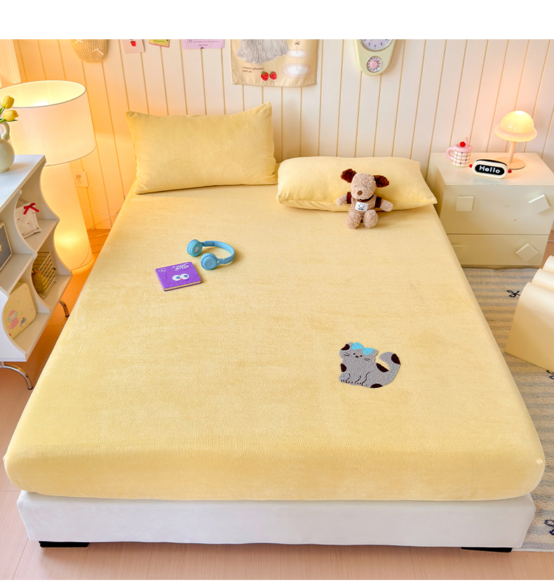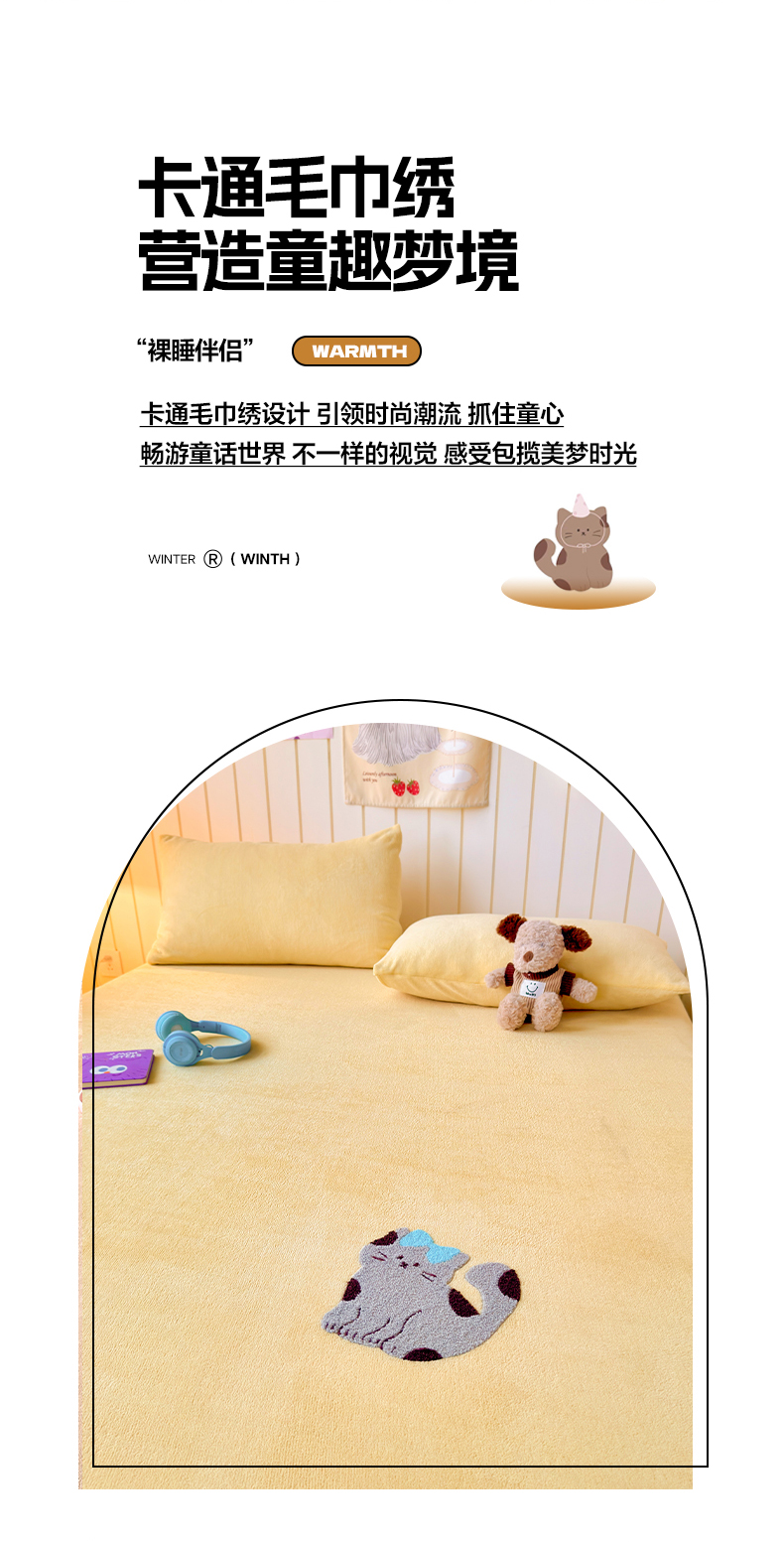(总)云尚床笠 2026新款亲肤舒适毛巾绣牛奶绒加厚单床笠单品床笠单件床笠-卡通猫,卡通猫-鹅绒黄,卡通猫-小豹纹粉,卡通猫-云柔粉,卡通猫-小豹纹米,卡通猫-暖阳杏,卡通猫-高级灰