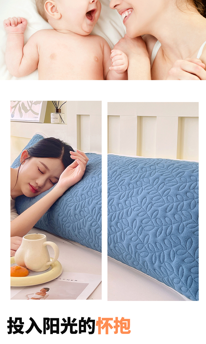 商品名称:雨彤家纺 2025新款牛奶绒夹棉包边长枕套 绒包边枕套-雾兰