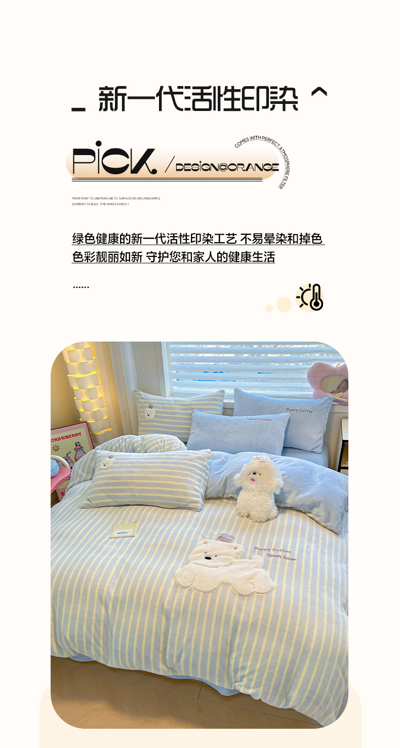 (总)如一 2025新款高克重大版数码印花牛奶绒四件套,毛毛狗,猫咪酱,俏皮狗,色彩猫,小熊仔,熊猫咖,游乐园,粉伙伴,拉兔咖,萌宠黄,萌宠绿,萌派对,围巾狗,线条狗,小粉喵,小花喵,小伙伴