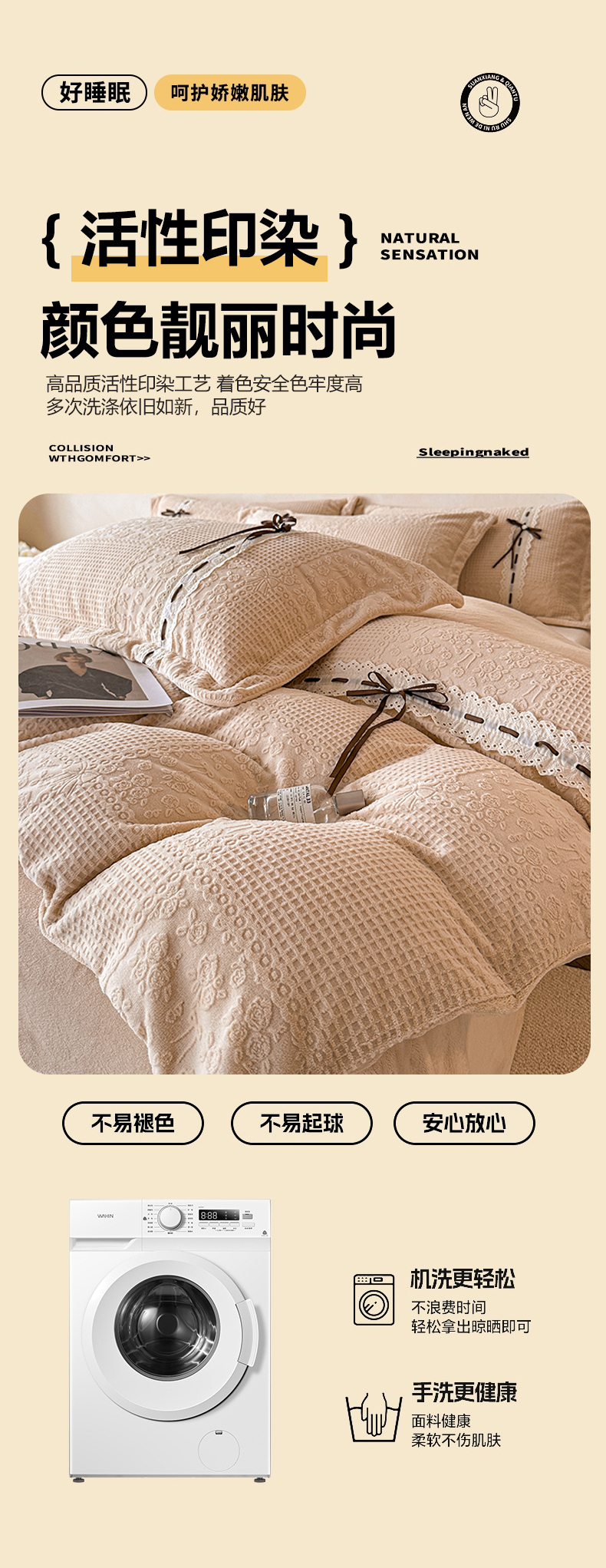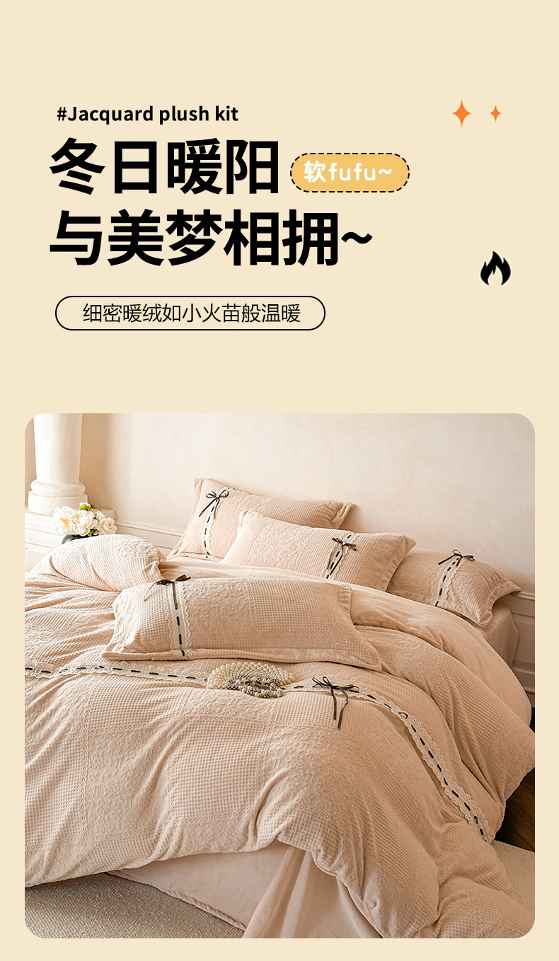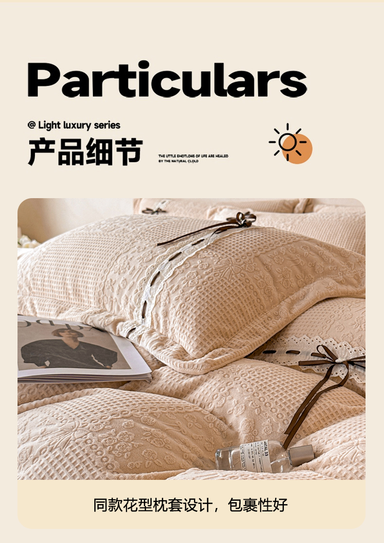(总)叠派家纺 2025新款高克重高端牛奶绒雕花织带工艺款梦巢系列四件套(直播热款)提供买家秀,梦巢-星空蓝,梦巢-金典灰,梦巢-麦卡其,梦巢-玉粉,送精美手提包装