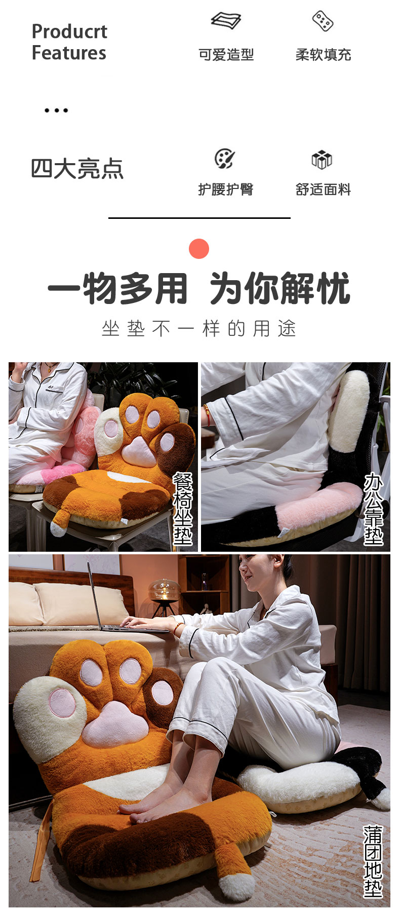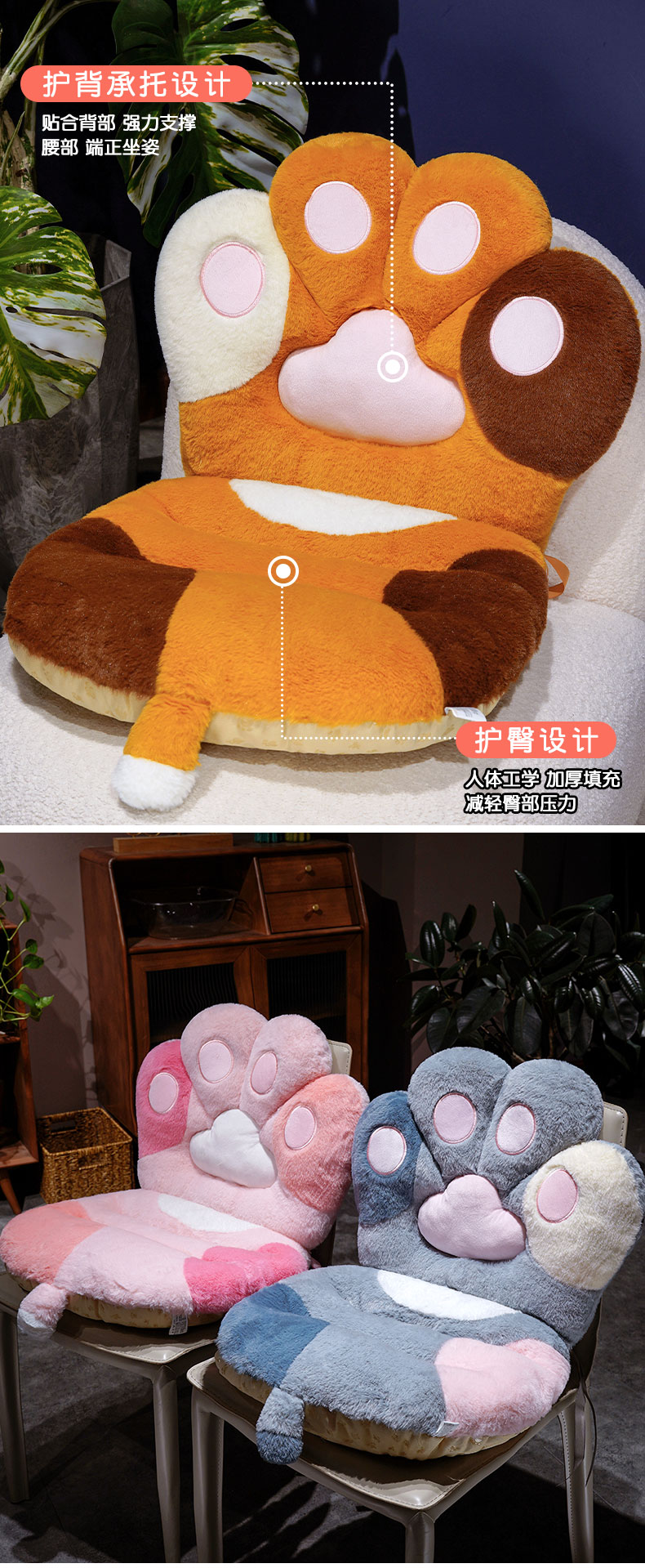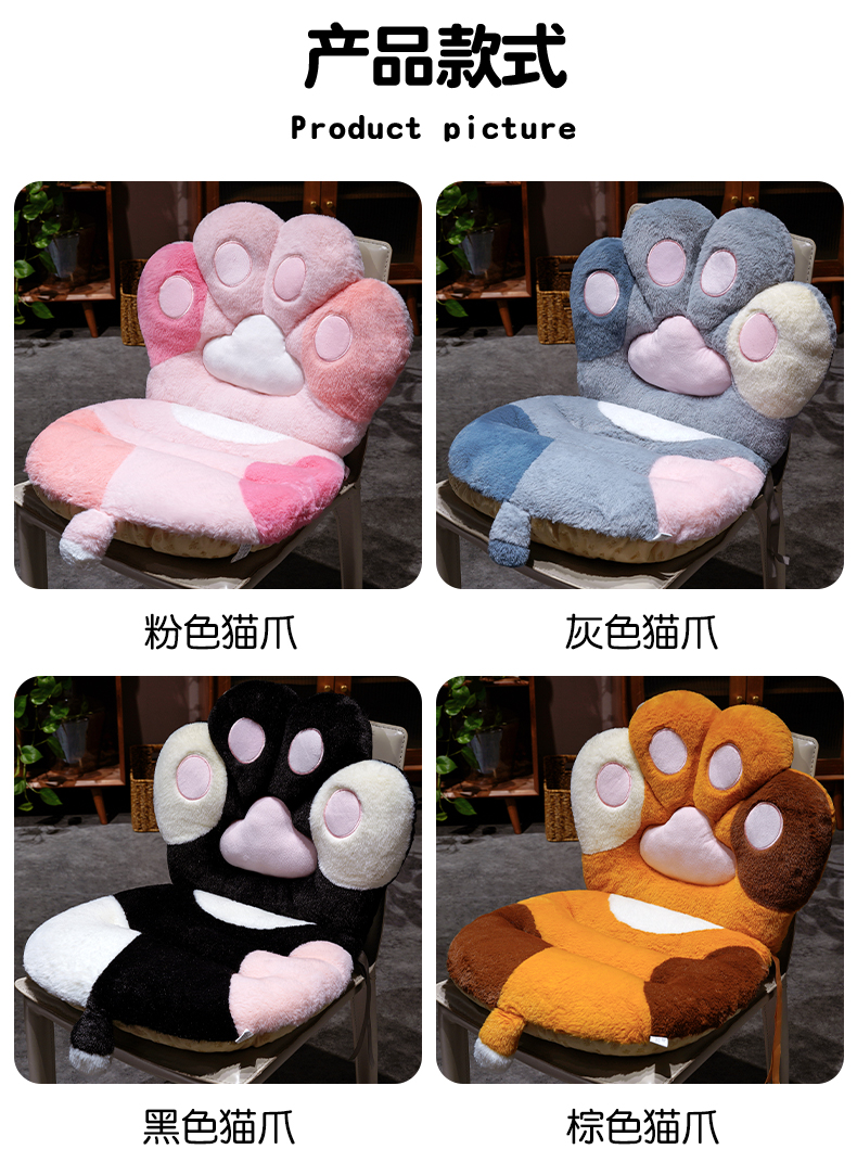 商品名称:仟亿莱 2025新款仿兔毛绒萌萌猫爪连体坐垫 粉色连体猫爪