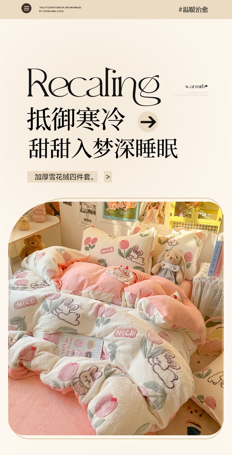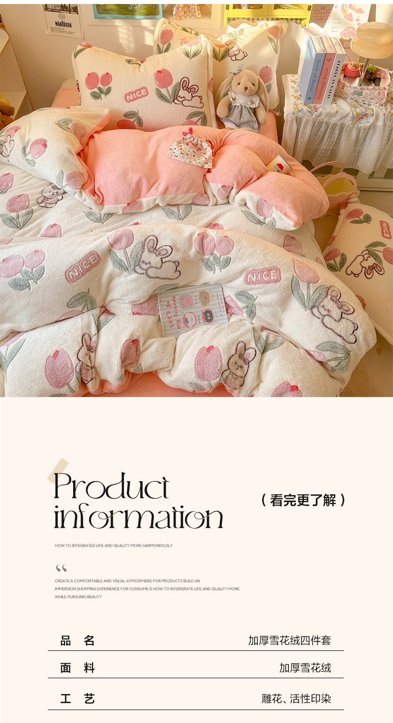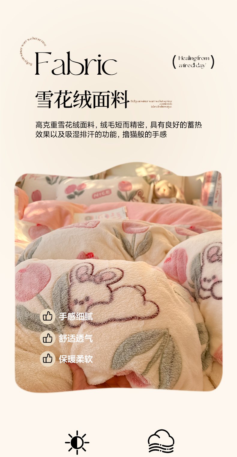 当前位置: 91家纺网 > 商品网购 > 床品套件 > 四件套 > 牛奶绒四件套 > 韩巢家纺 2025新款高克重雪花绒牛奶绒四件套系列 郁金香