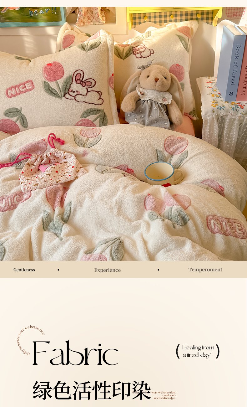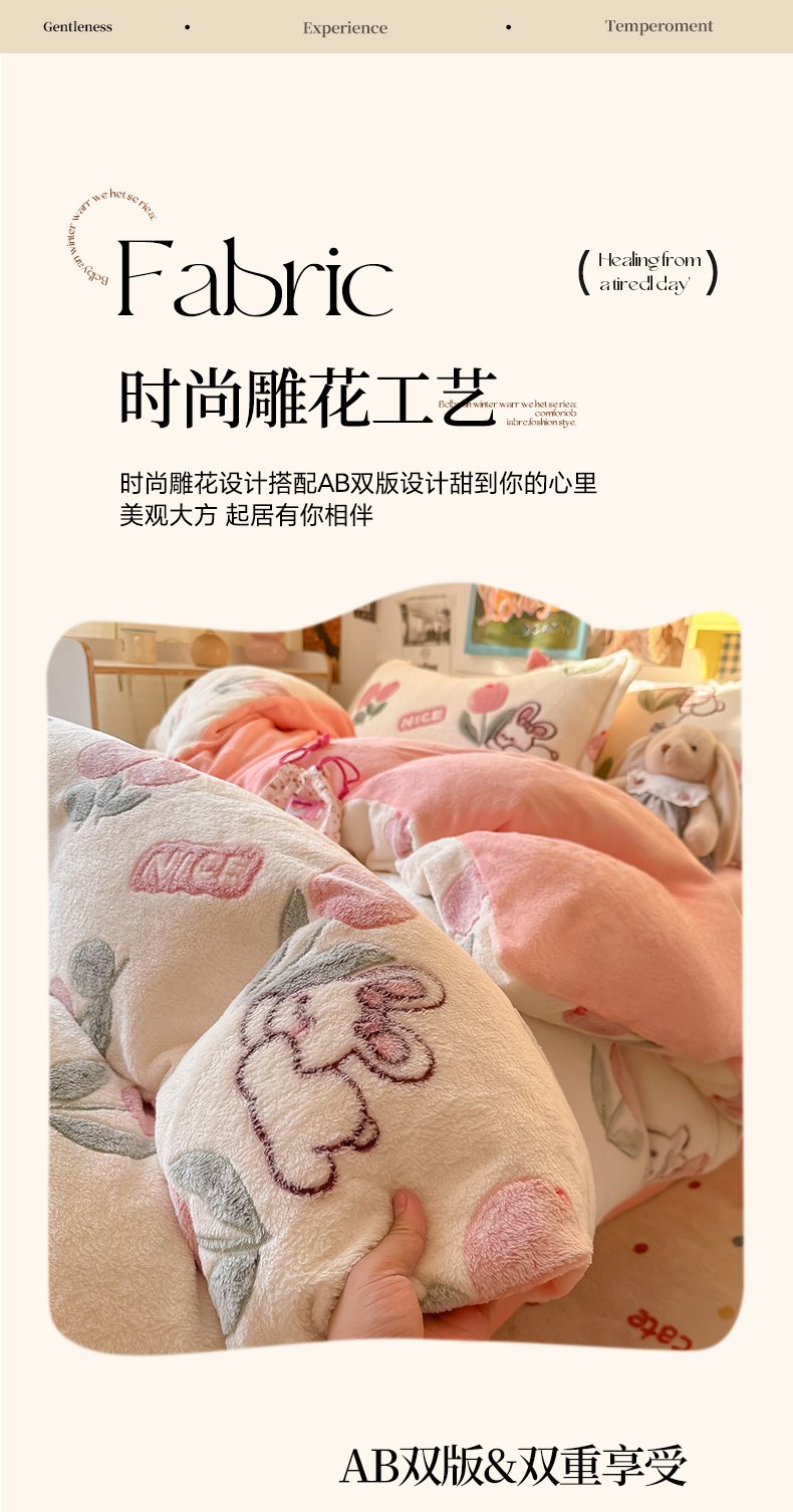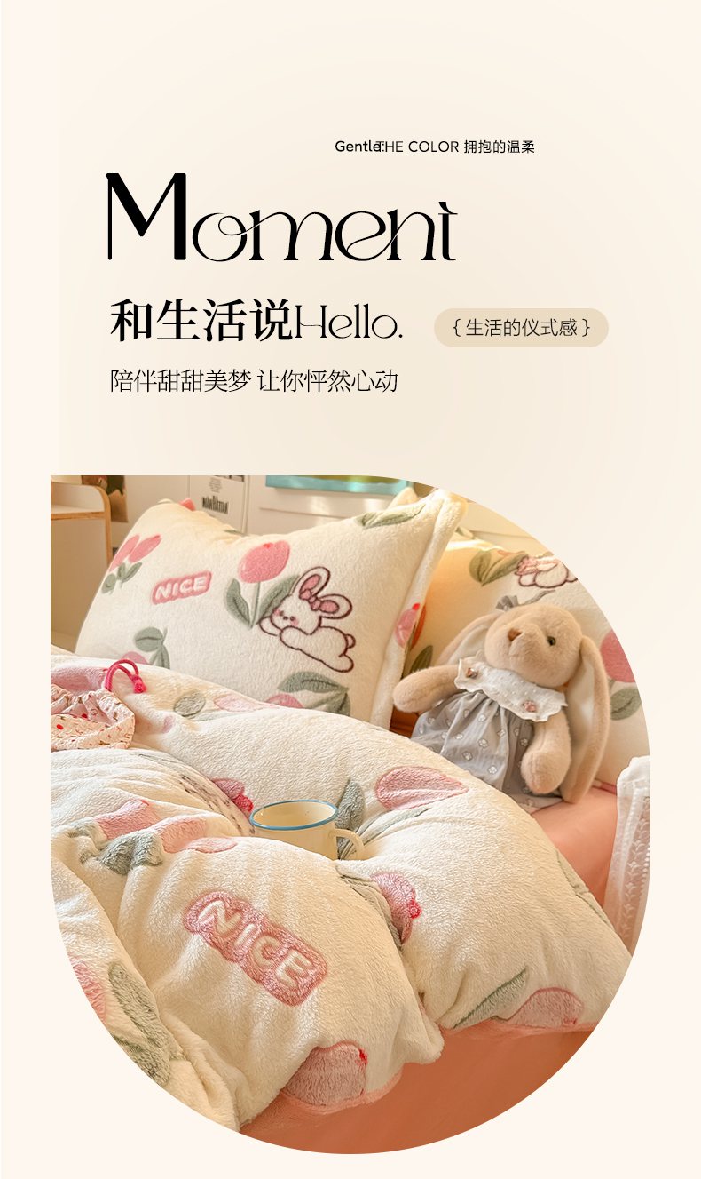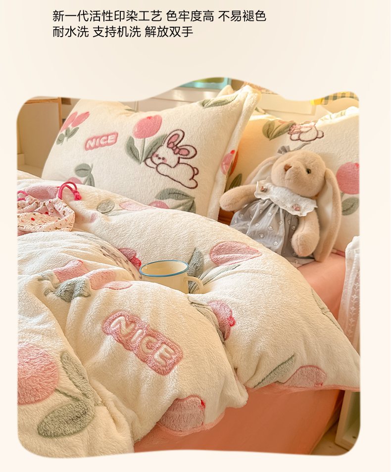当前位置: 91家纺网 > 商品网购 > 床品套件 > 四件套 > 牛奶绒四件套 > 韩巢家纺 2025新款高克重雪花绒牛奶绒四件套系列 郁金香
