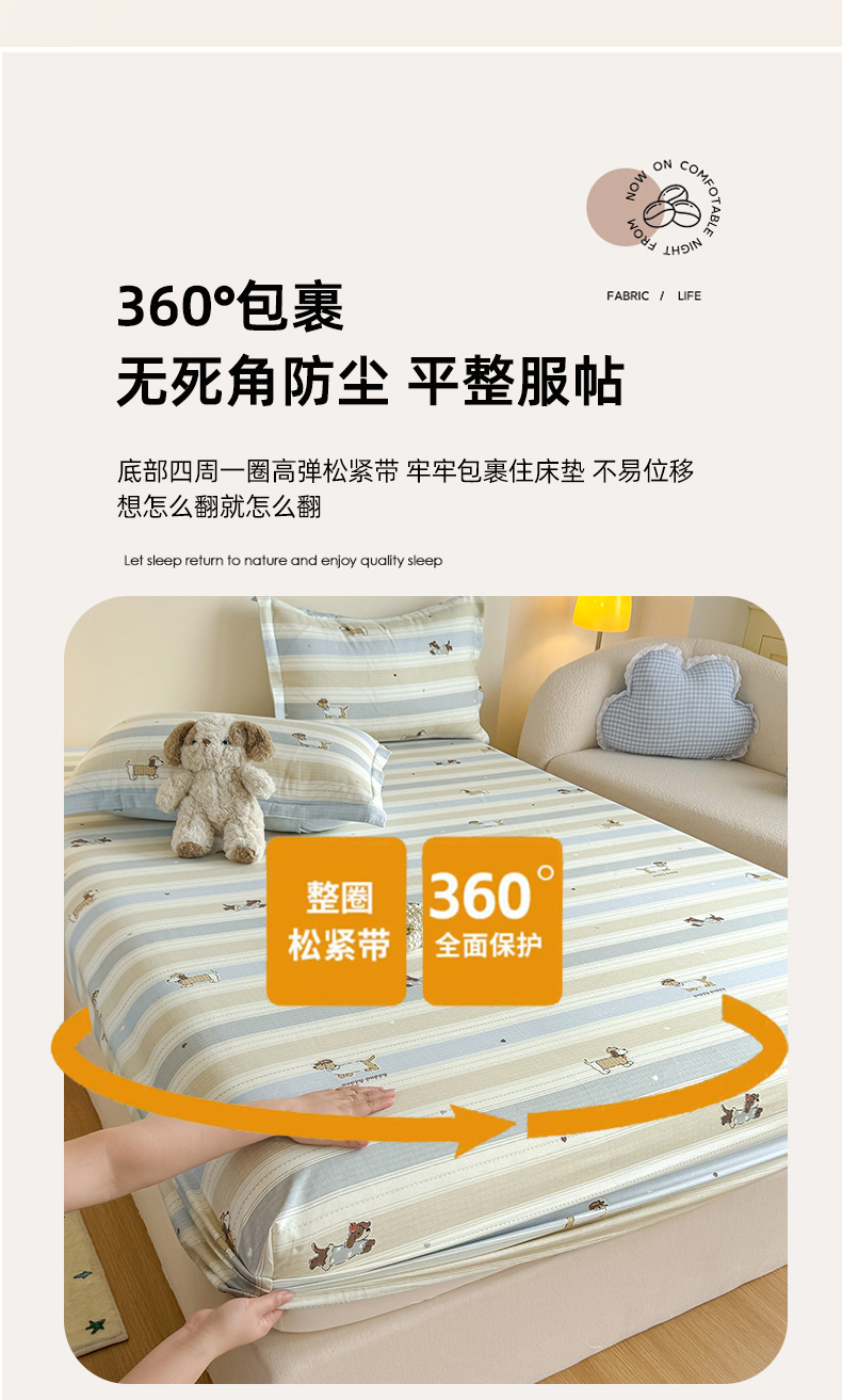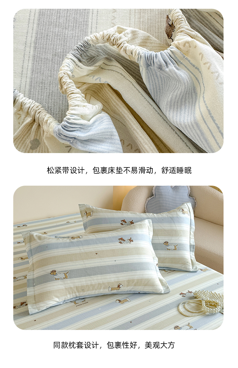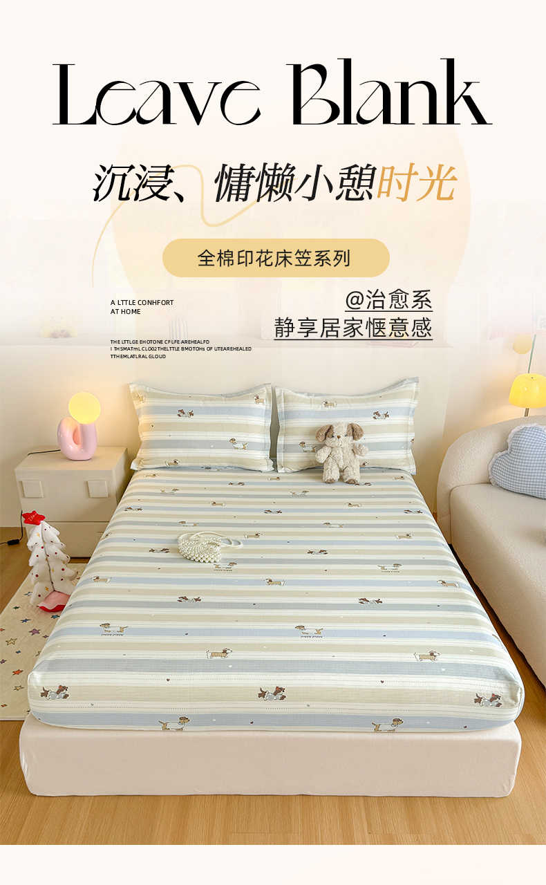 尚帛 2026新款全棉品质喷气印花爆款四件套 多规格套件 单品系列-单床笠 奔跑小狗