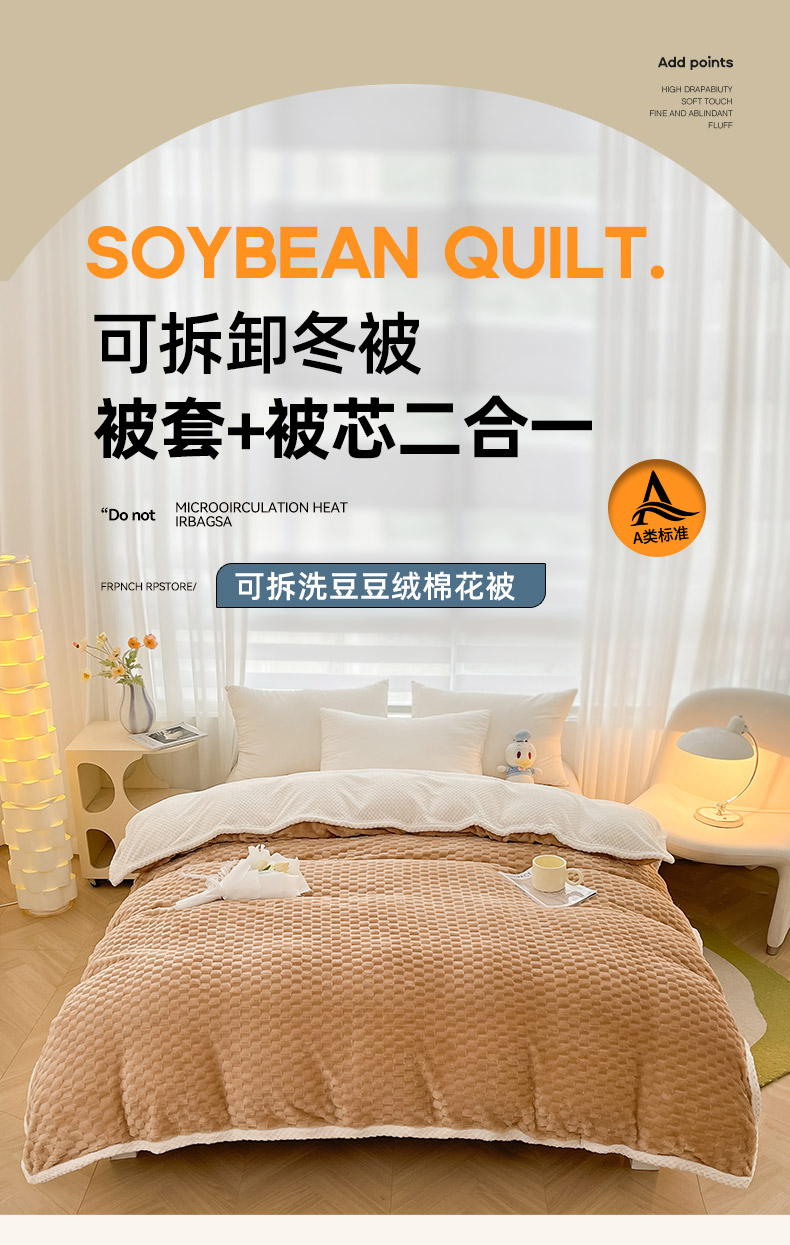 • 91家纺网 家纺一手货源 找家纺 熙宴家纺 2025新款可拆卸冬被被套+被芯二合一可拆洗豆豆绒棉花被子被芯 卡其