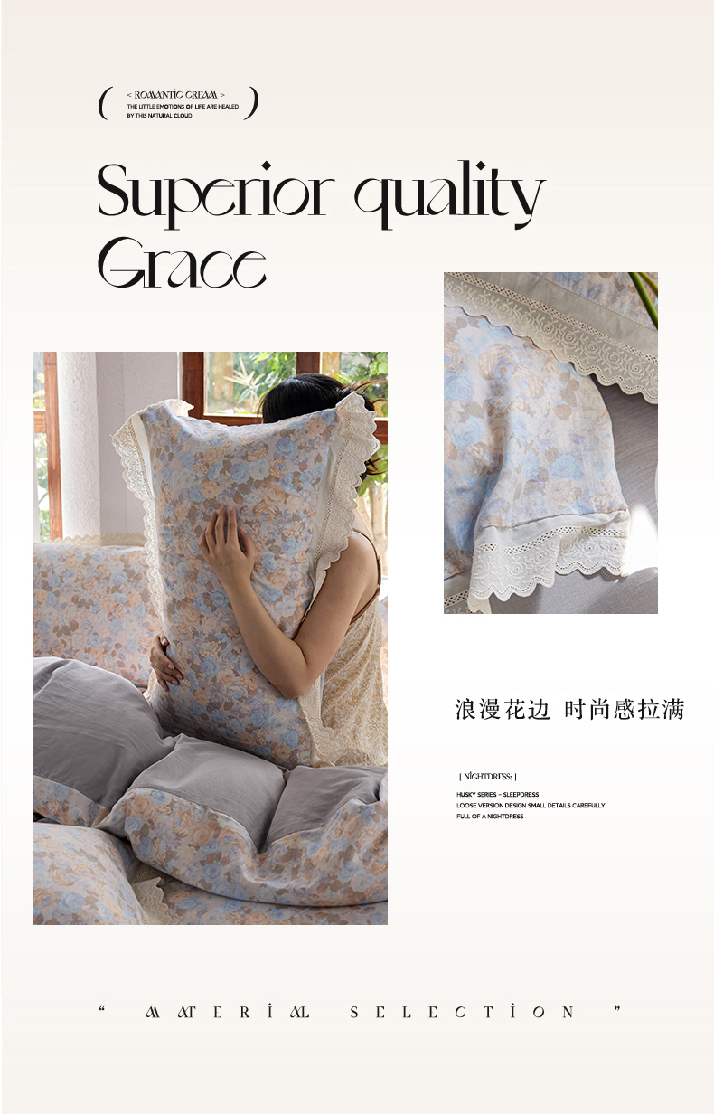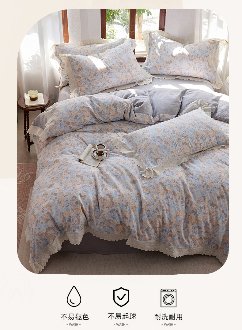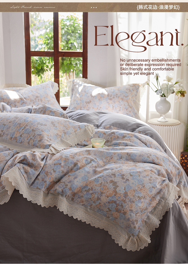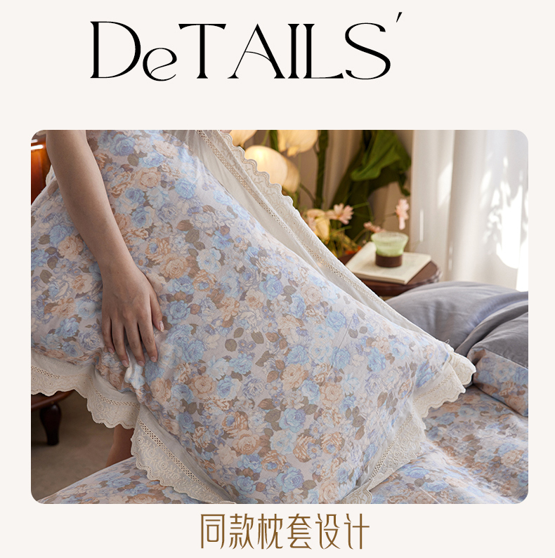 当前位置: 91家纺网 > 商品网购 > 床品套件 > 四件套 > 全棉普通四件套 > 梵克保罗 2026春夏新品韩版全棉纯棉双层纱镂空花边系列四件套 半岛花园-兰