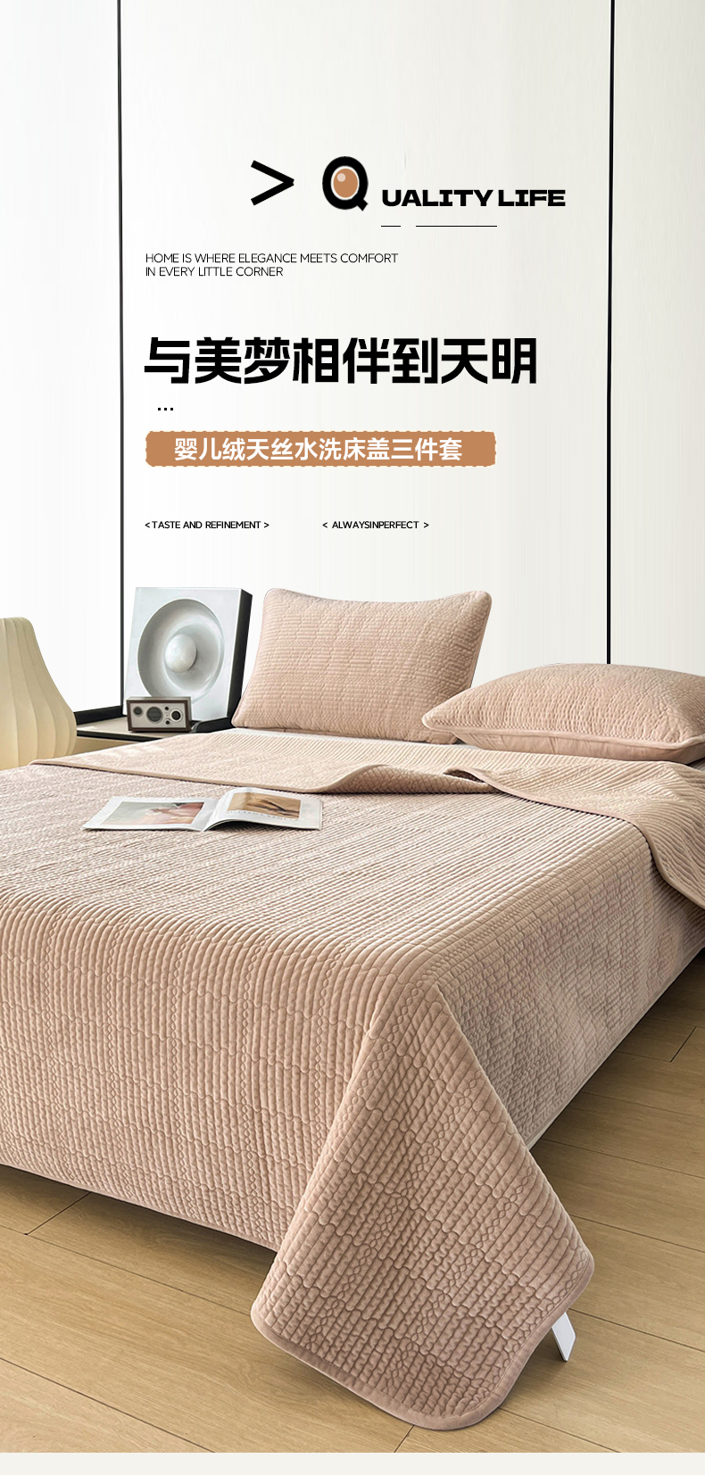 • 91家纺网 家纺一手货源 找家纺 沐纯家居 2025新款婴儿绒天丝水洗床盖三件套-赫拉 赫拉-摩卡色