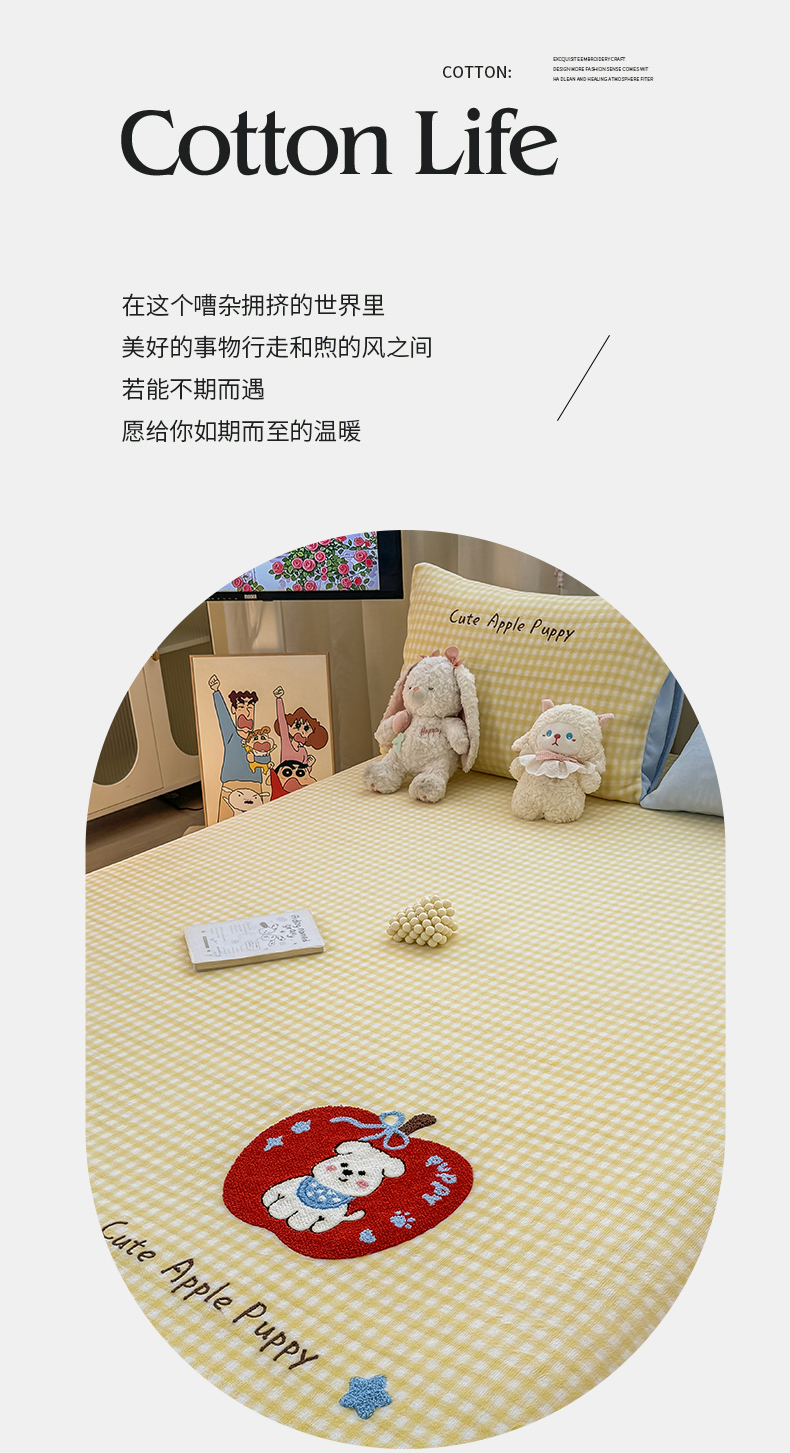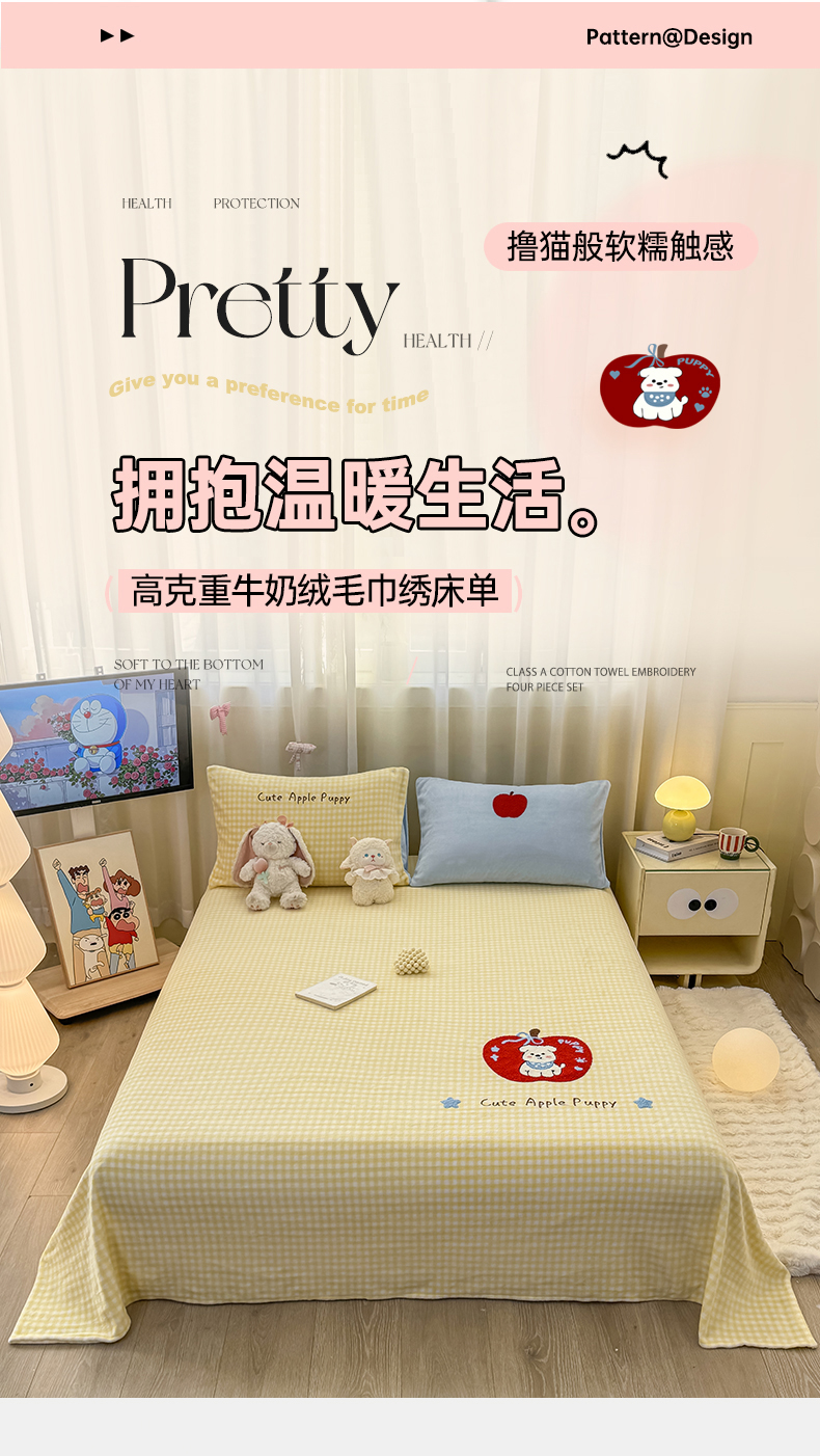 当前位置: 91家纺网 > 商品网购 > 床上用品 > 床单 > 灰鲸 2025新款高克重牛奶绒毛巾绣单床单 黄格苹果狗