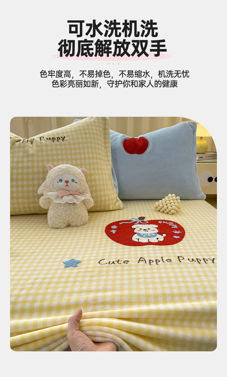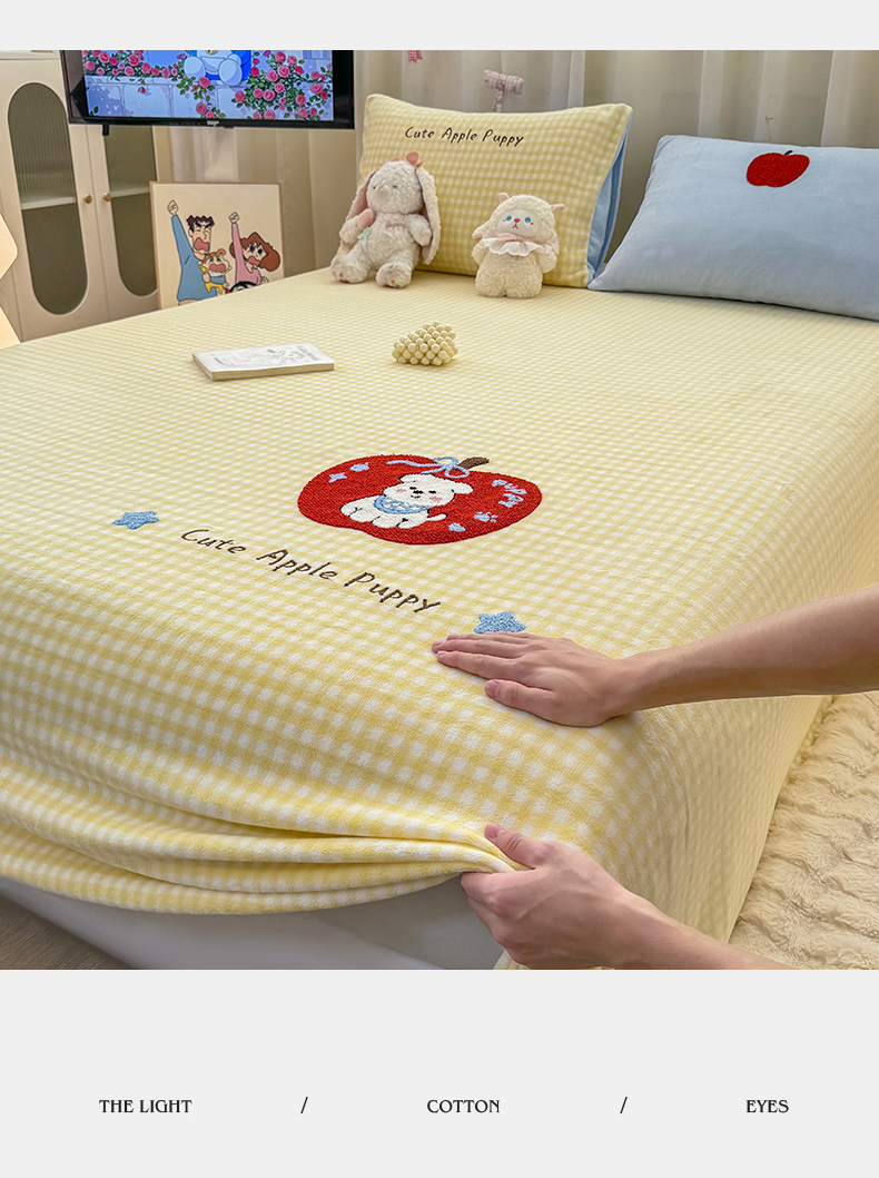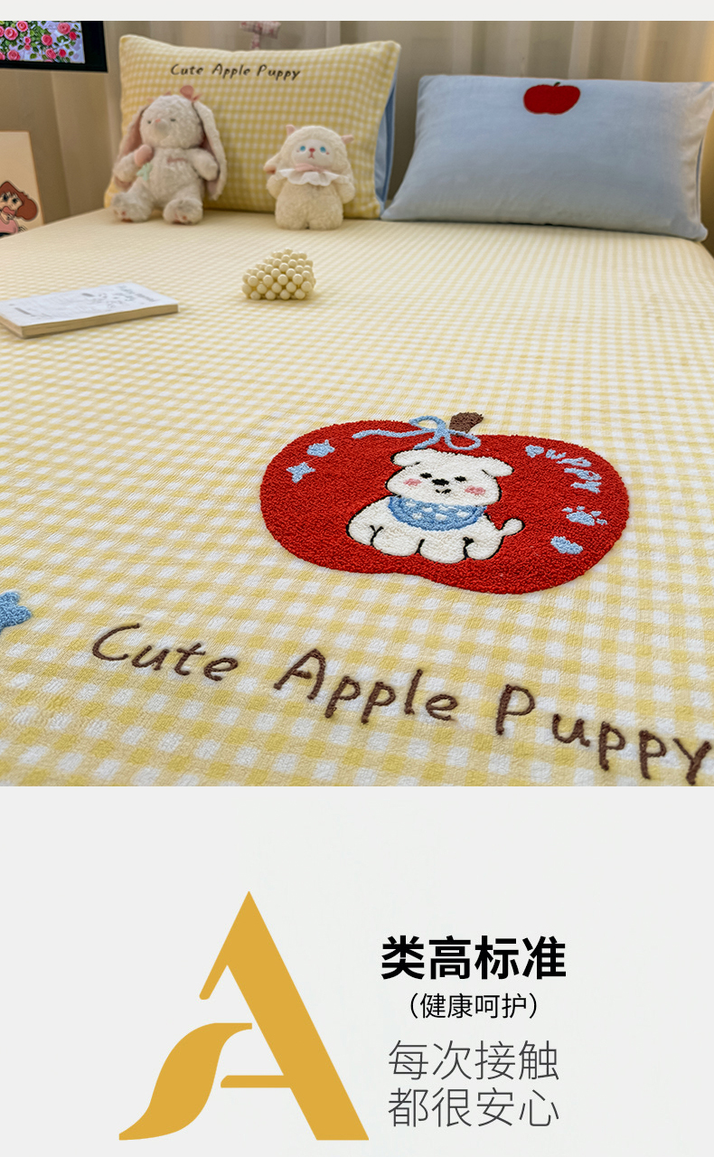 (总)灰鲸 2025新款高克重牛奶绒毛巾绣床笠单床笠单品床笠床笠单件,蓝格苹果狗,粉格蛋糕喵,粉格苹果狗,黄格蛋糕喵,黄格苹果狗,蓝格蛋糕喵,紫格蛋糕喵,紫格苹果狗
