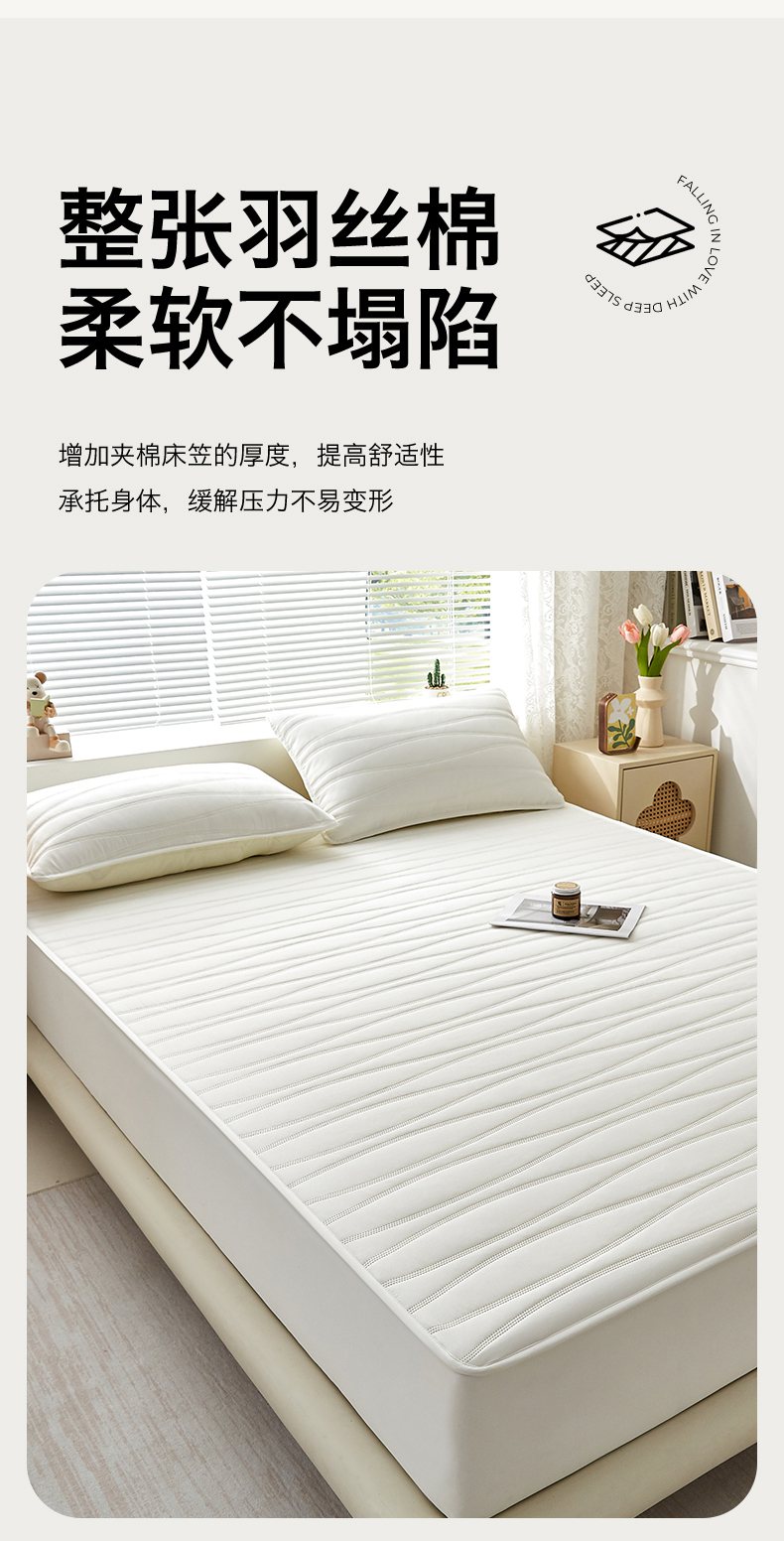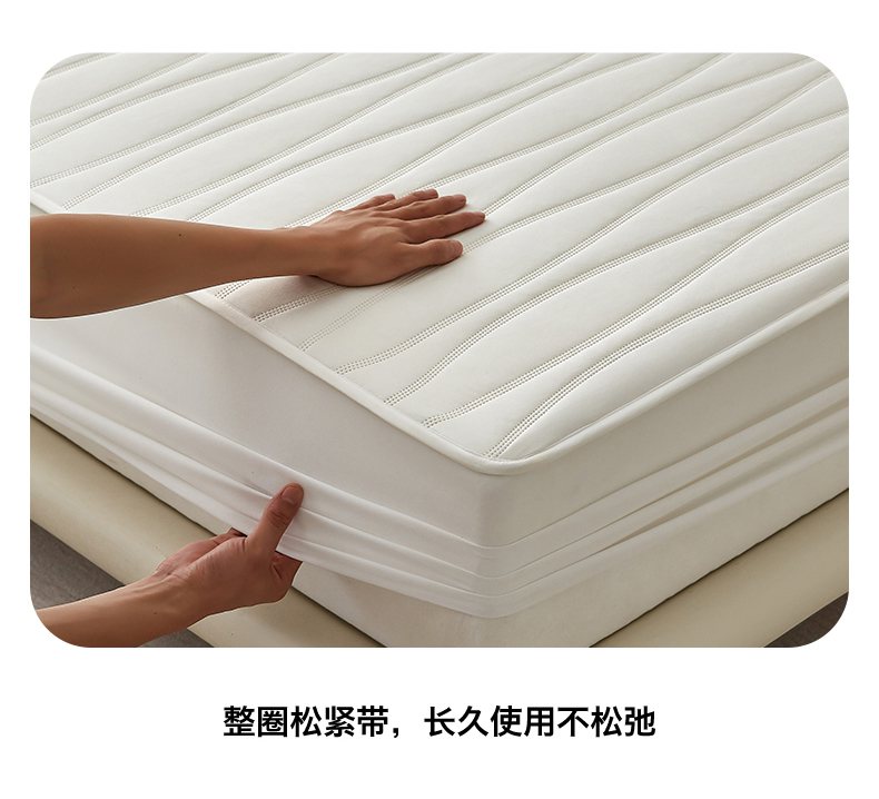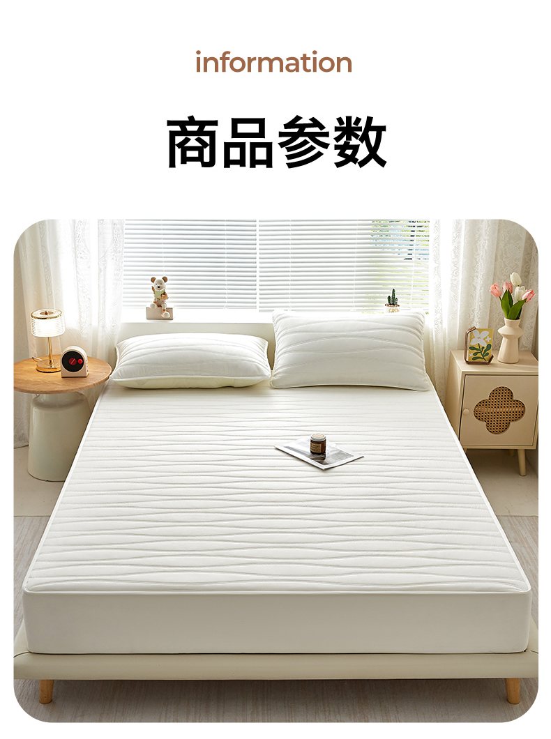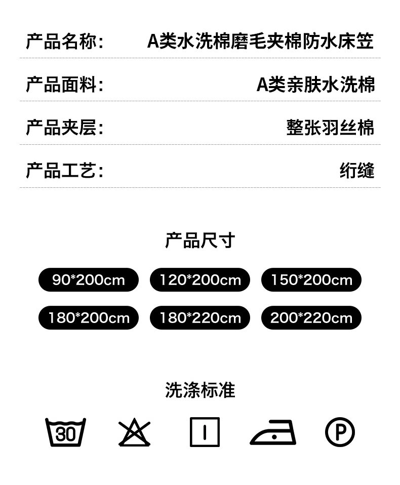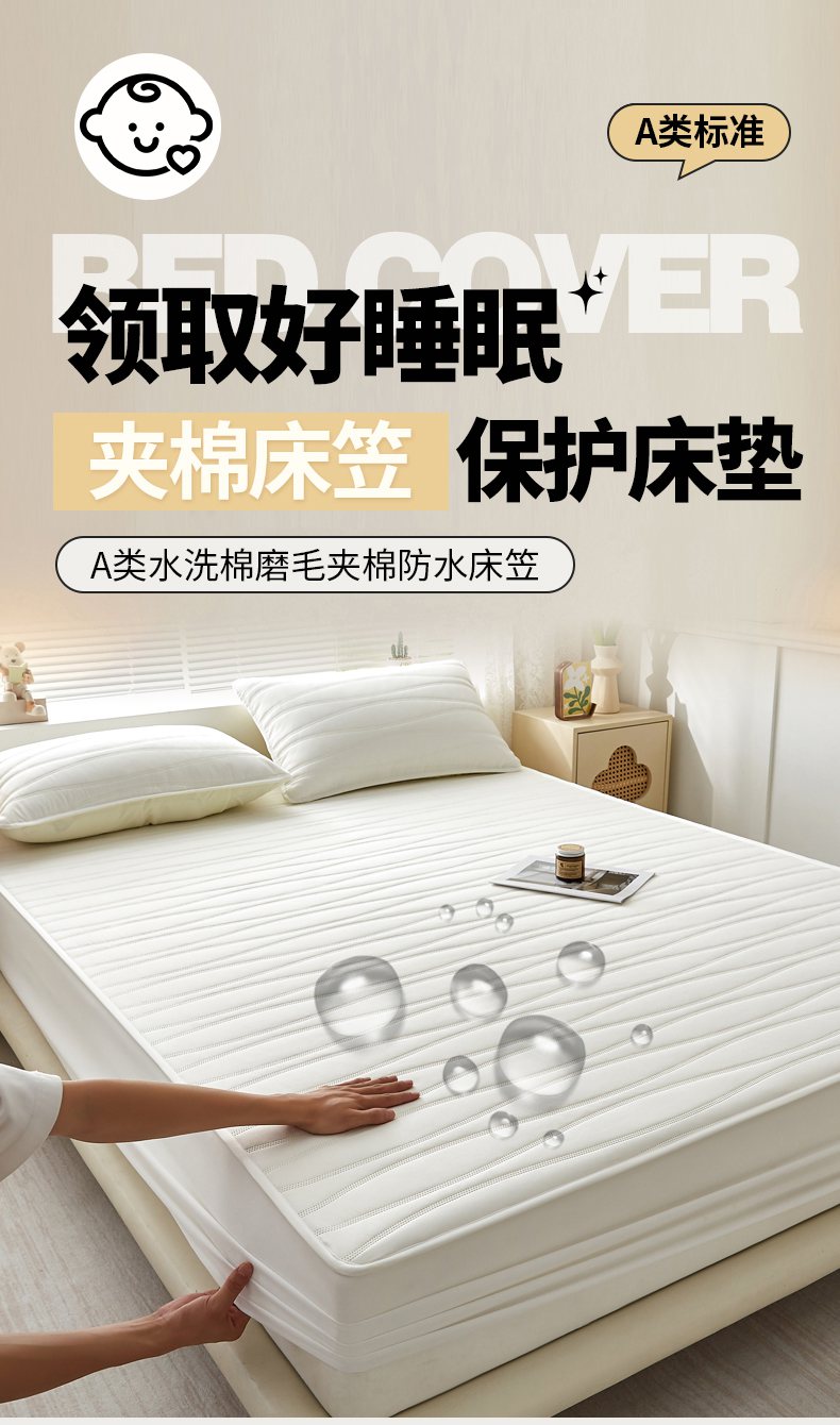 • 91家纺网 家纺一手货源 找家纺 盛眠家纺 2025新款A类水洗棉磨毛夹棉防水床笠 若水-白色