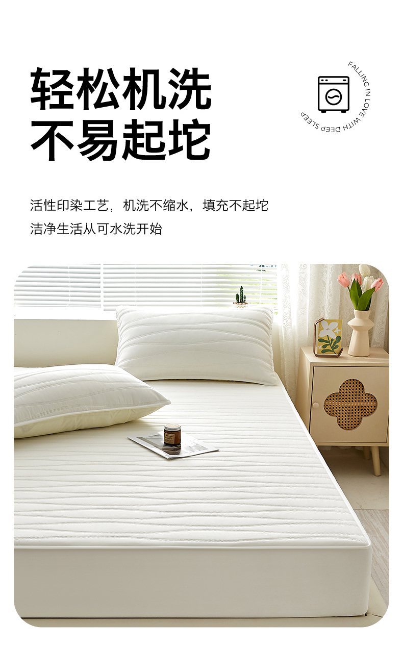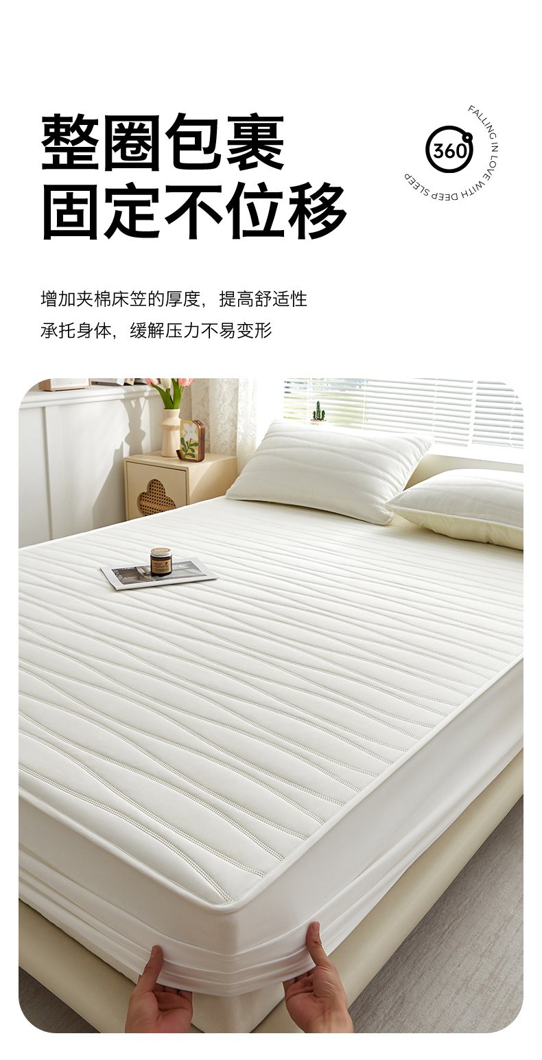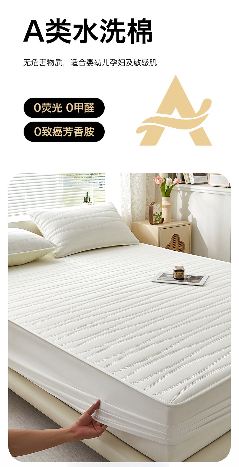 盛眠家纺 2025新款A类水洗棉磨毛夹棉防水床笠 若水-白色