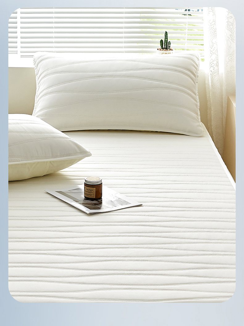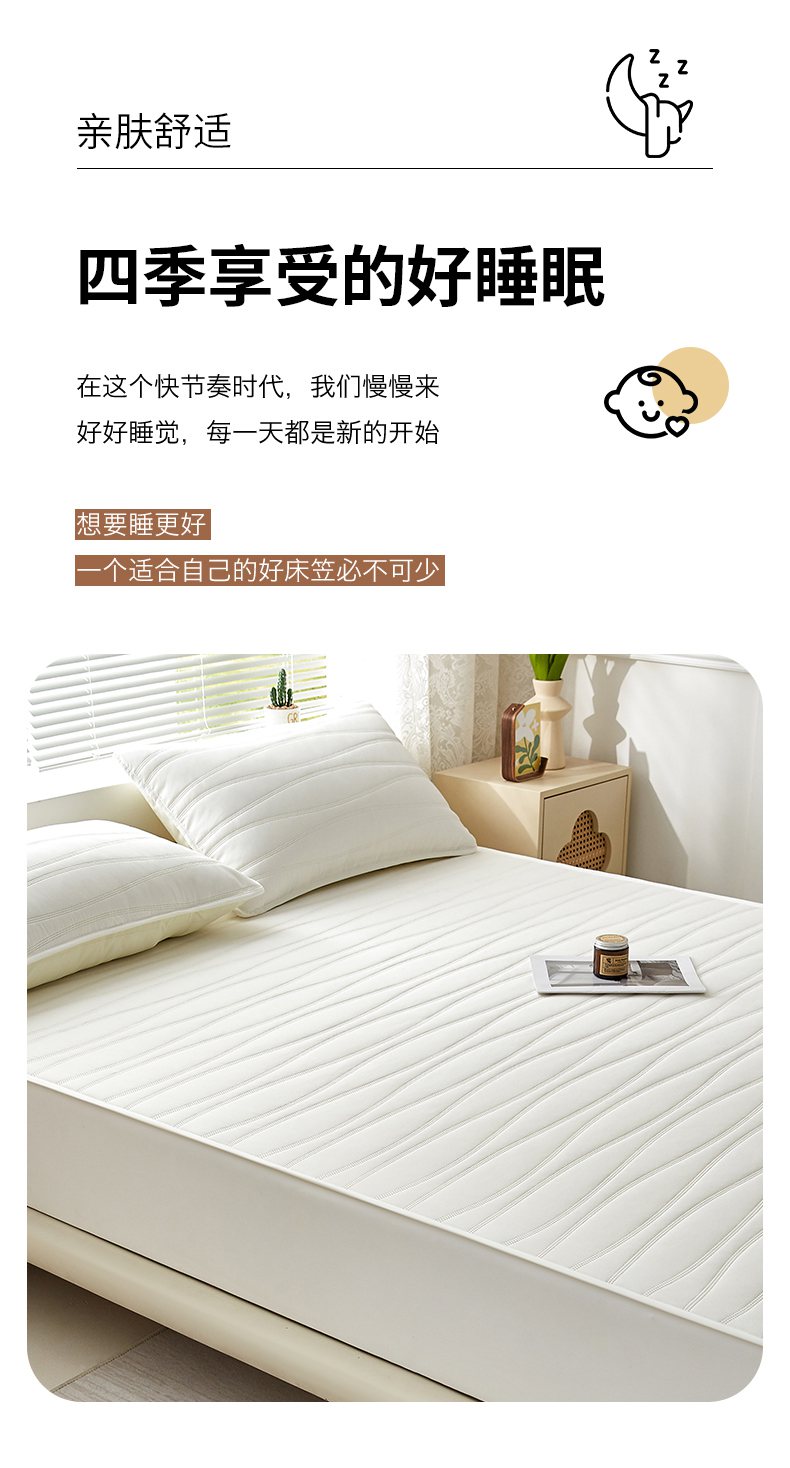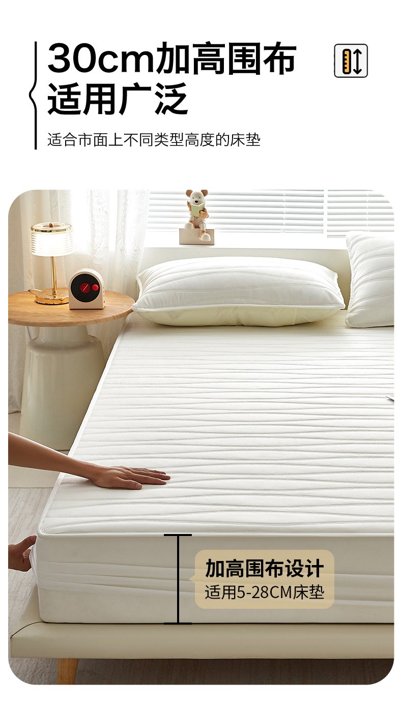 盛眠家纺 2025新款A类水洗棉磨毛夹棉防水床笠 若水-白色