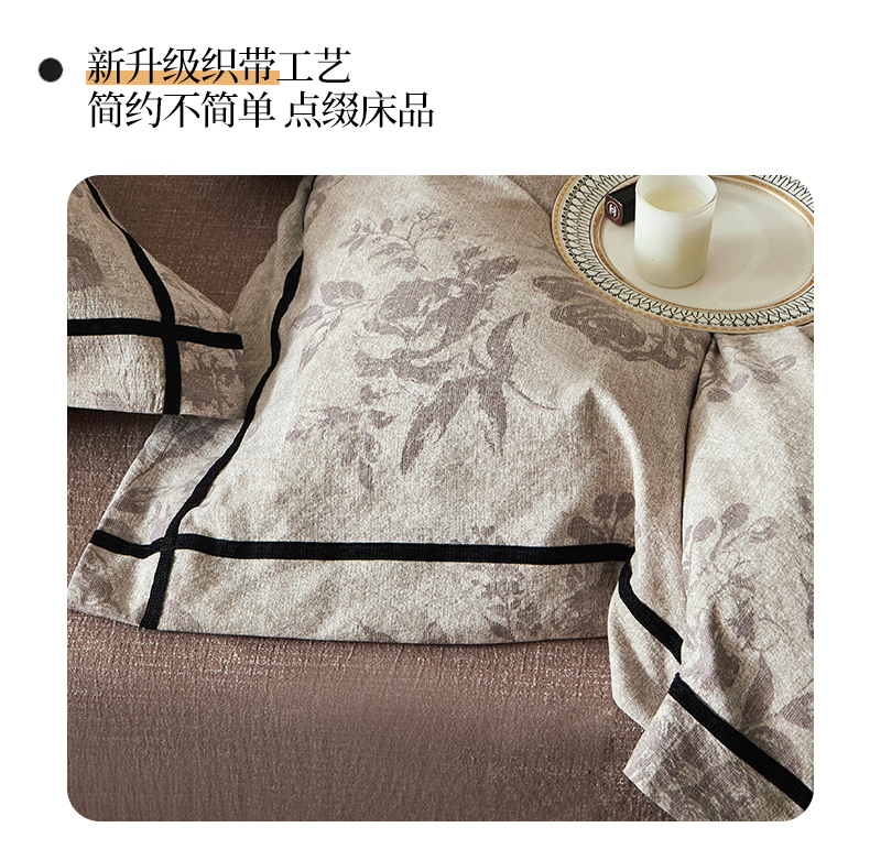 商品名称:优悦生活馆 2025新款高克重原麻印花四件套 砚秋