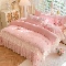 商品名称:漫布云2025秋冬新款11斤230g全消光牛奶绒夹棉床盖款四件套纯色蕾丝花边刺绣床裙款床盖 花韵-樱花粉