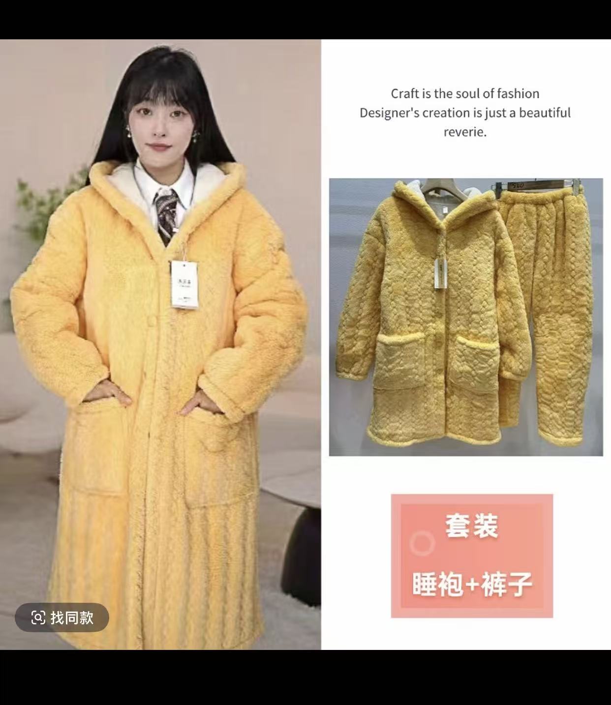 (总)洛兰沙家居馆 2024新款清新款睡衣女秋冬三层夹棉珊瑚绒加厚保暖两件套女士可外穿加绒家居服,99078,99077,99064,99065,99076,99063,99062