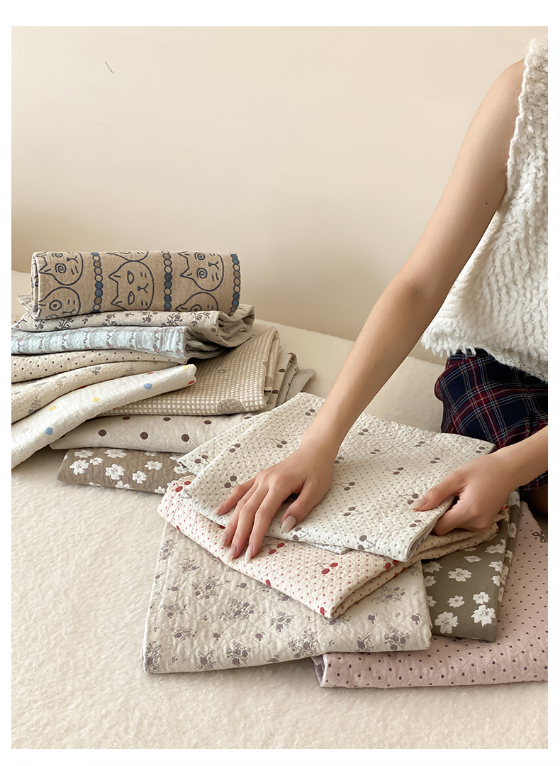(总)麻依 2025新款韩国清新全棉纱布床盖三件套,憨憨熊,彩色南瓜,车厘子,两颗草莓,奶盖KT,奶油波点-灰,奶油彩点,水蓝KT,水墨花,丝带,桃心-米白,小猫鱼