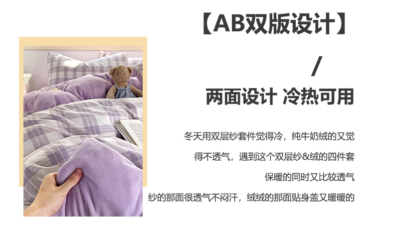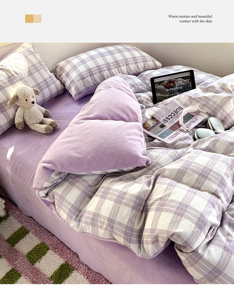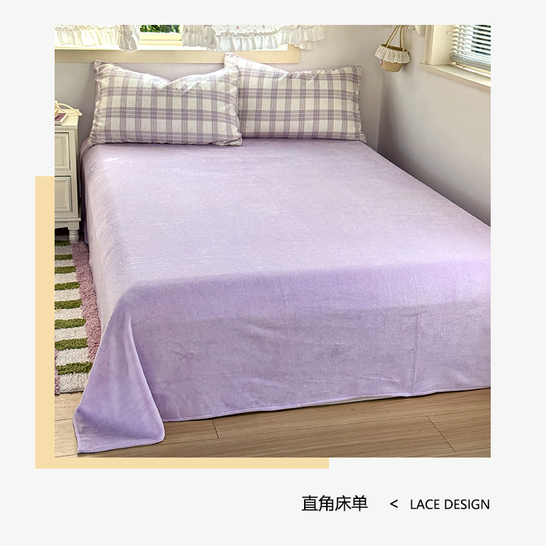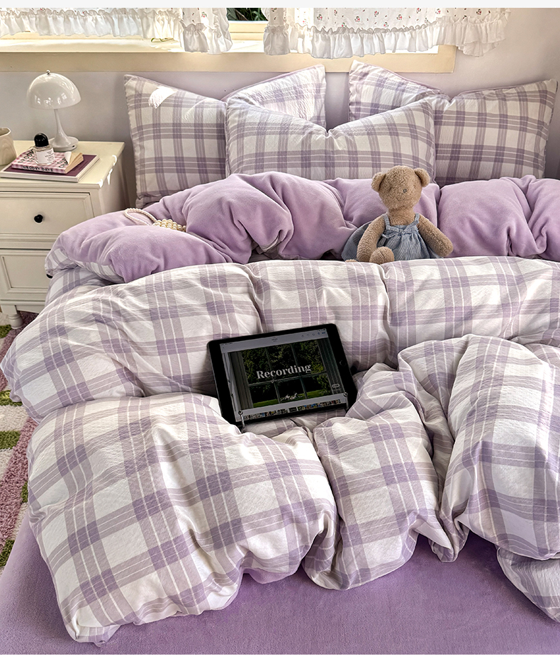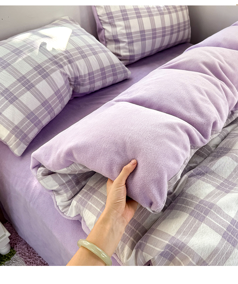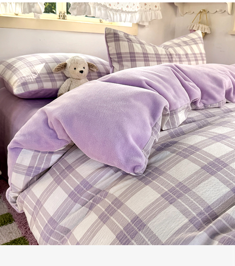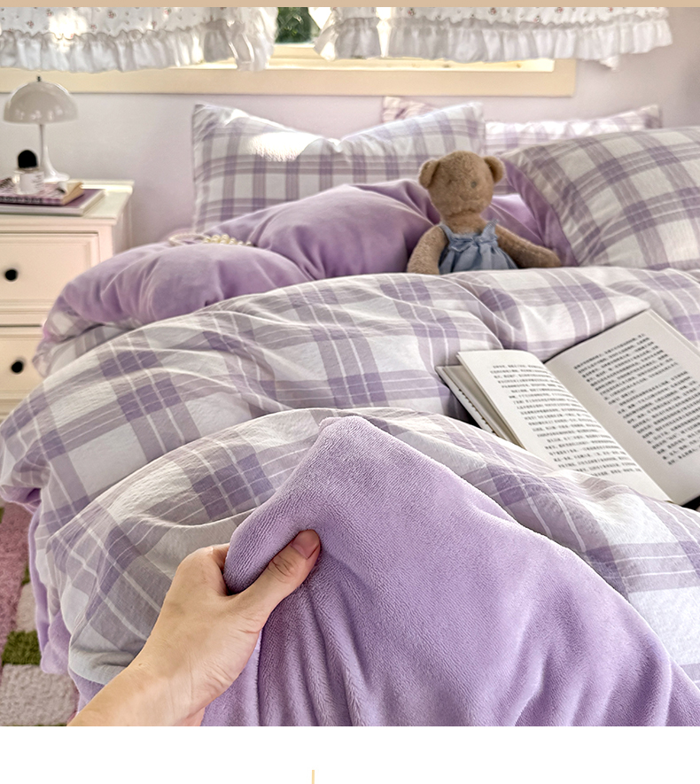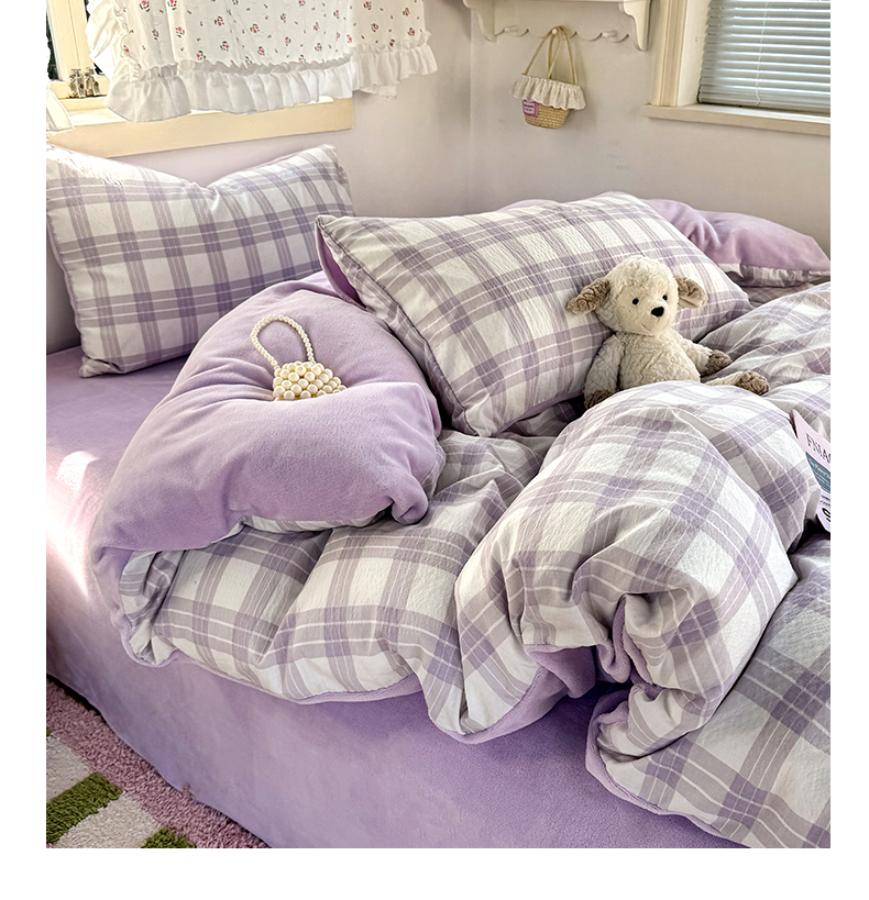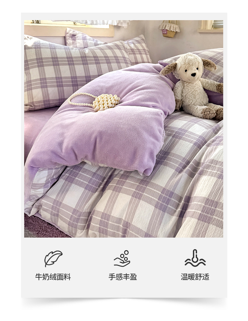 多品家纺 2025新款云感双层纱高克重牛奶绒单被套 紫大格