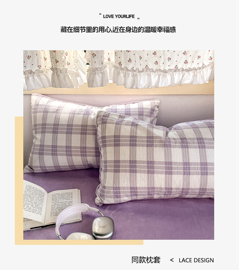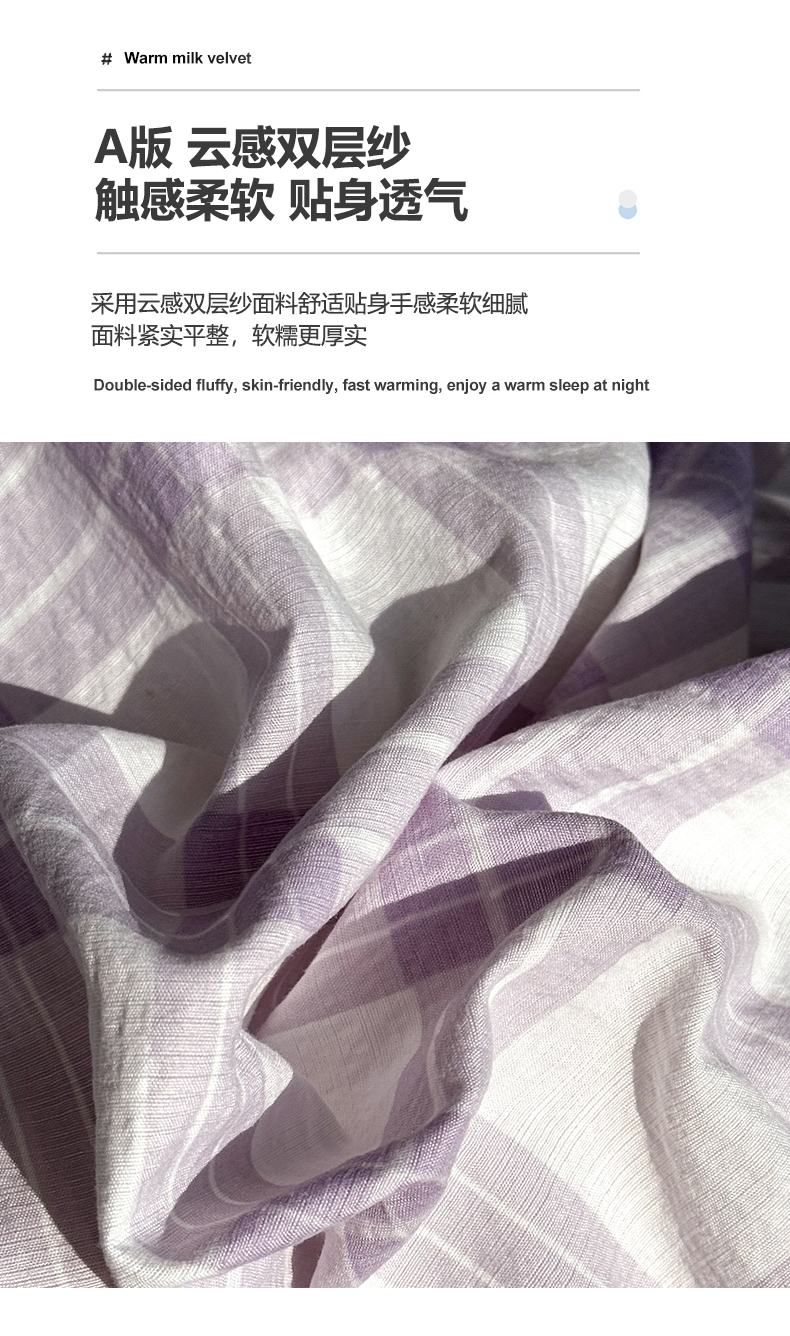 商品名称:多品家纺 2025新款云感双层纱高克重牛奶绒单被套 紫大格
