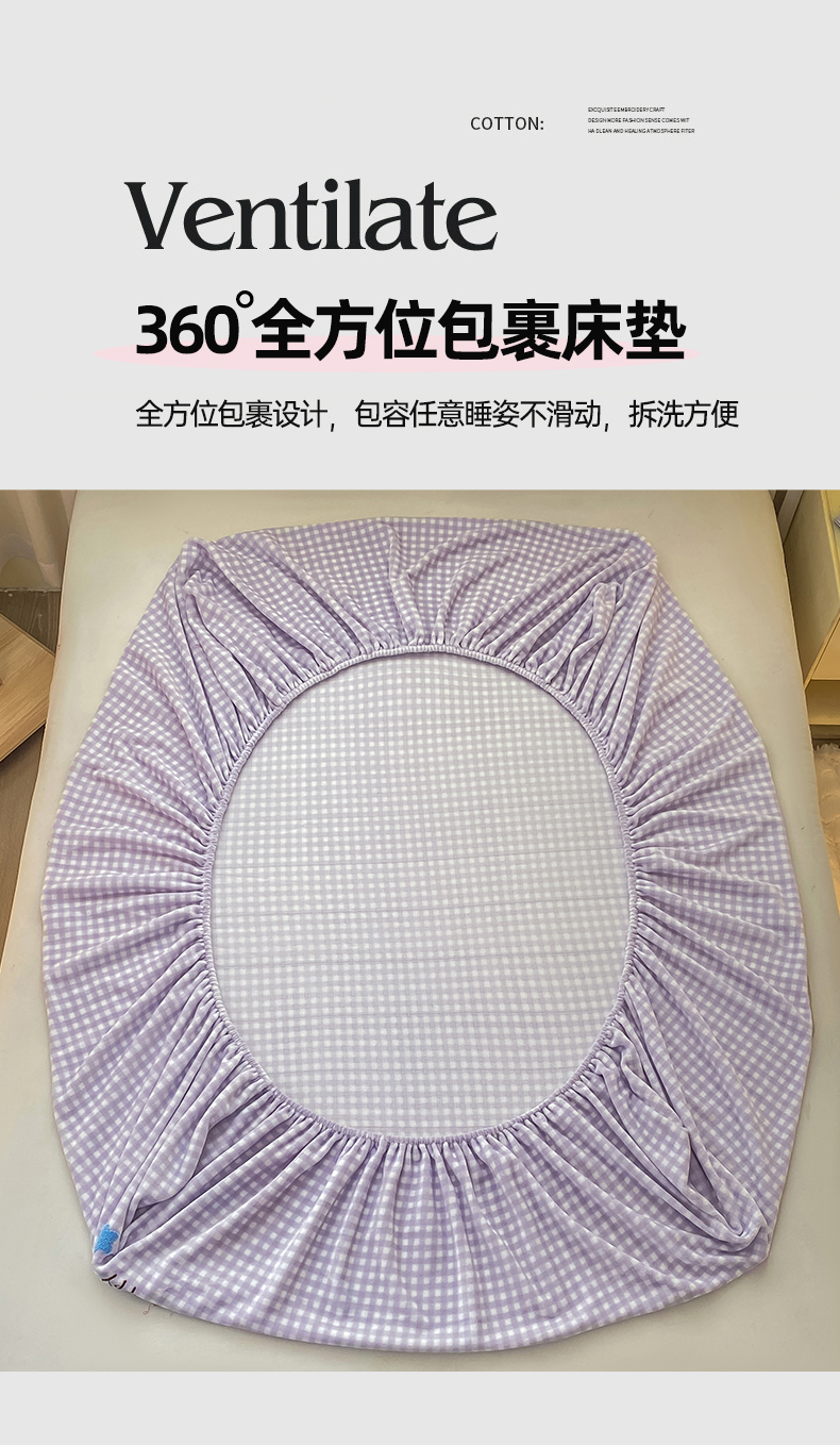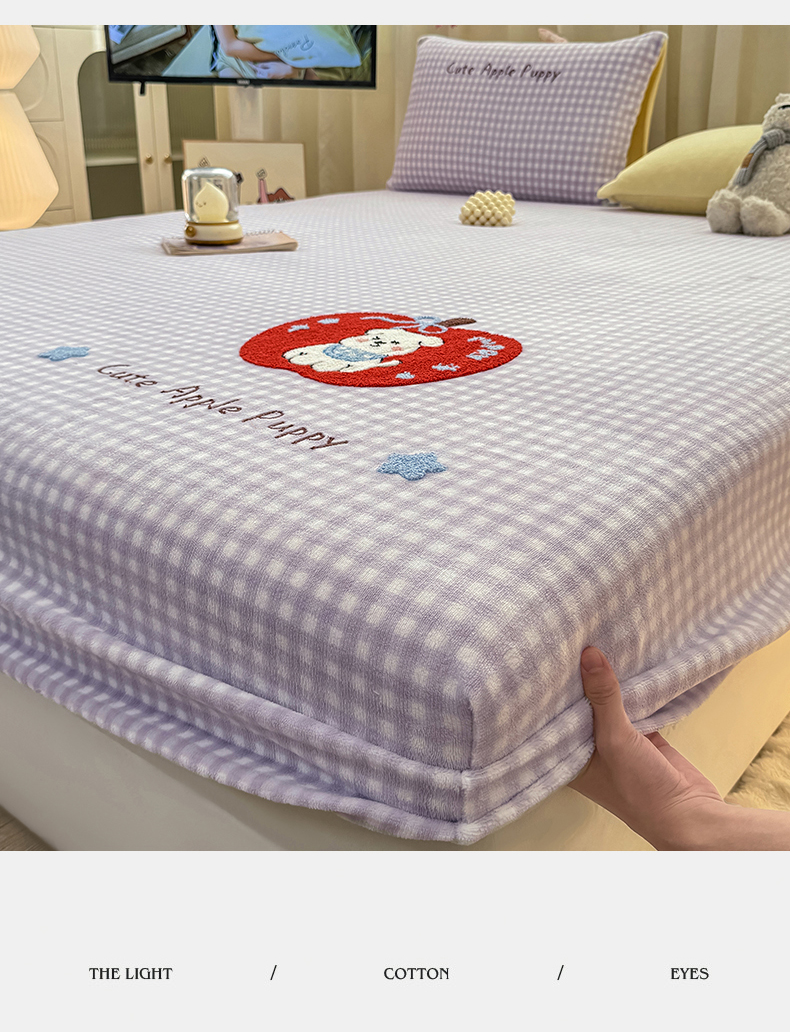 灰鲸 2025新款高克重牛奶绒毛巾绣床笠单床笠单品床笠床笠单件 紫格苹果狗
