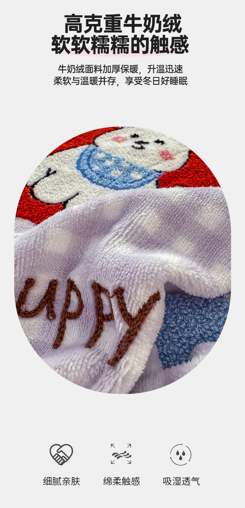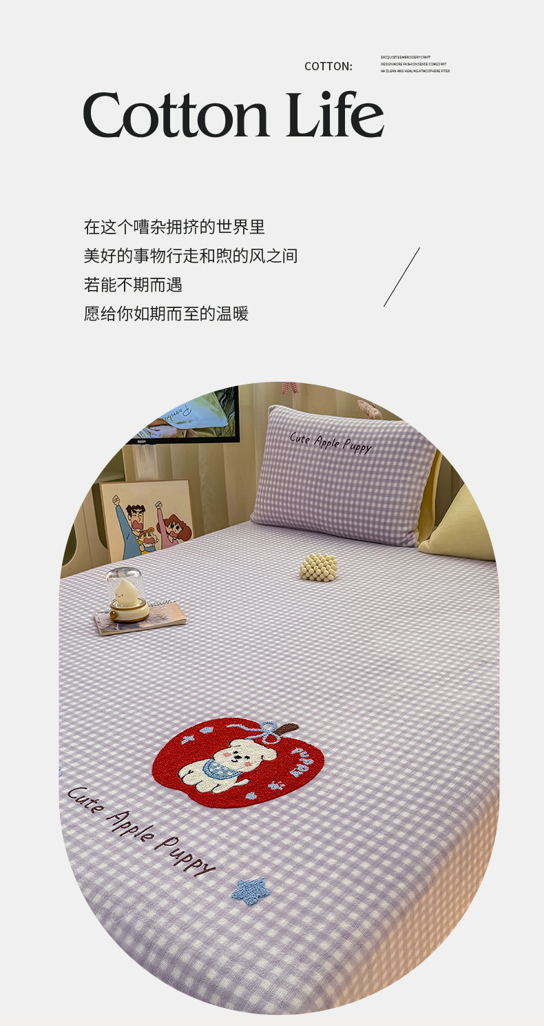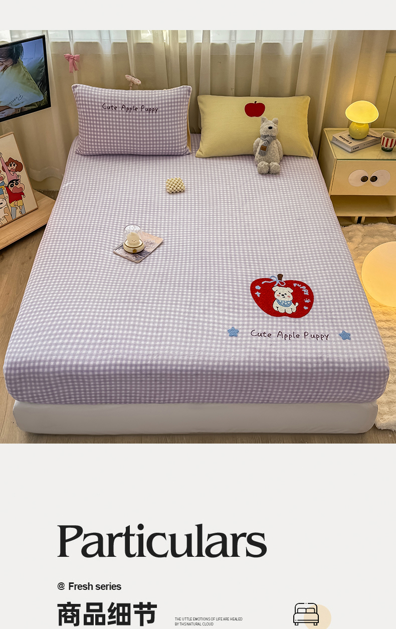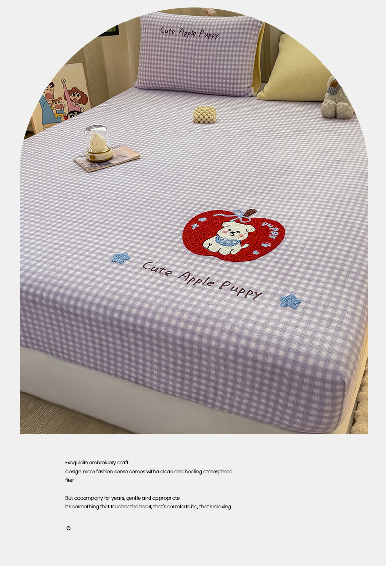 • 91家纺网 家纺一手货源 找家纺 灰鲸 2025新款高克重牛奶绒毛巾绣床笠单床笠单品床笠床笠单件 紫格苹果狗