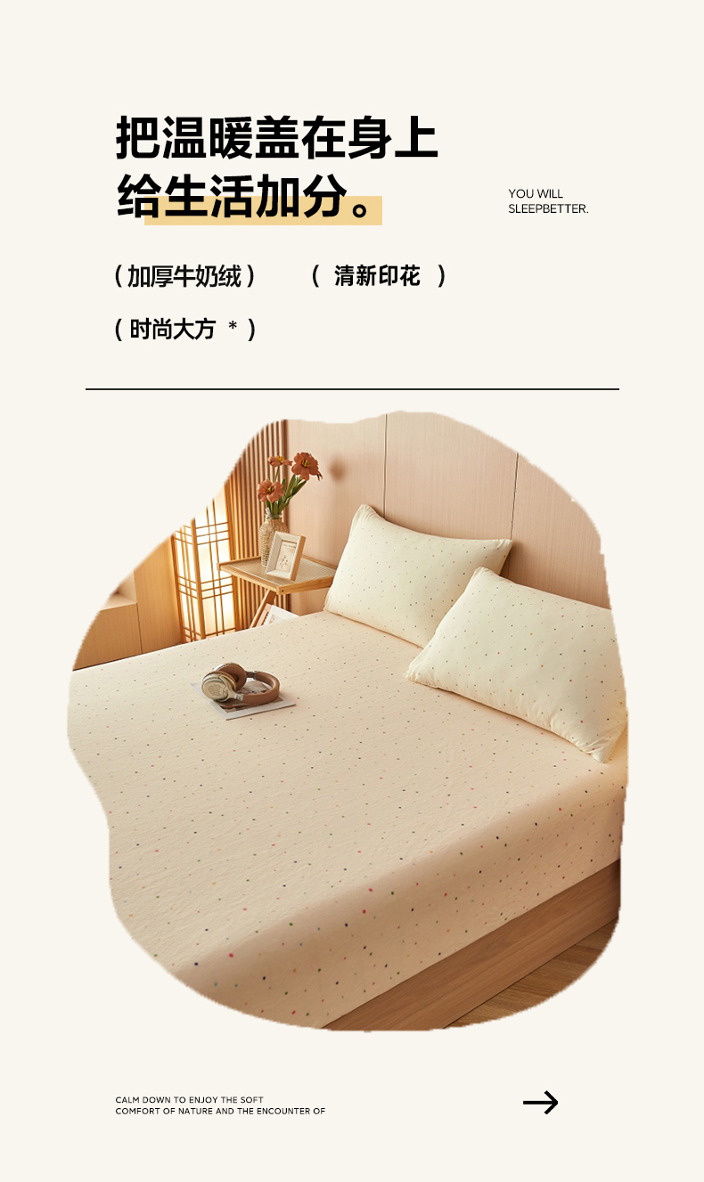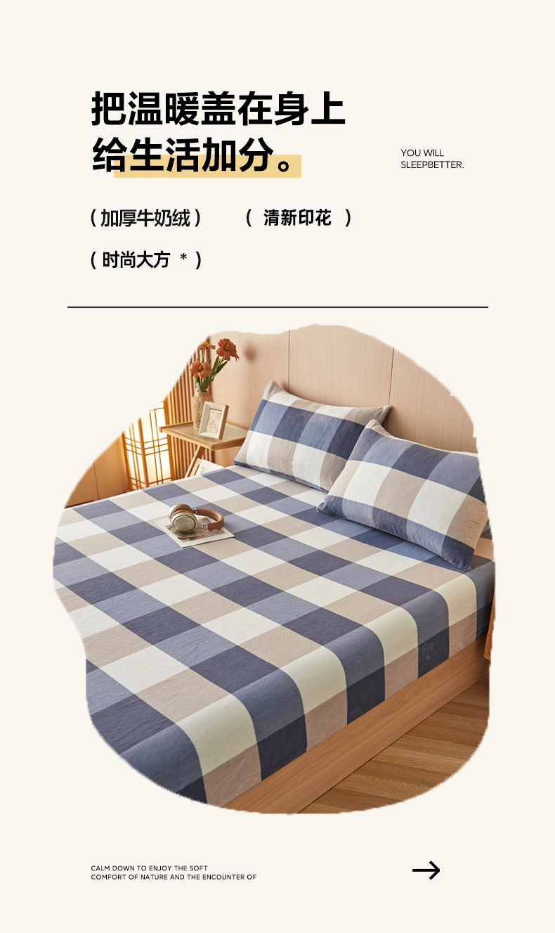 商品名称:(总)一禾 2025新款简约印花高克重牛奶绒床笠