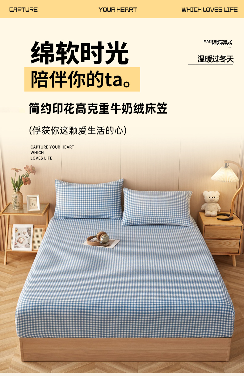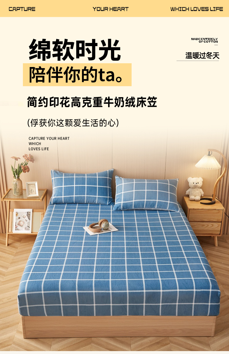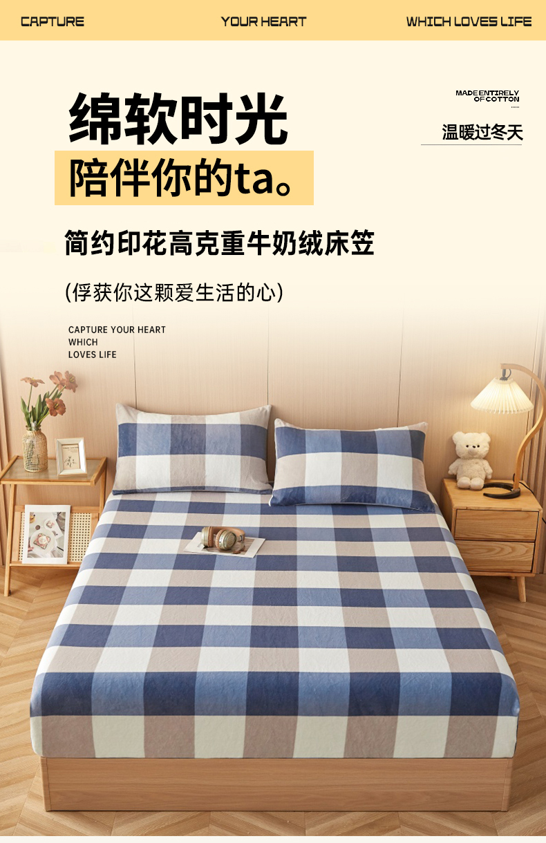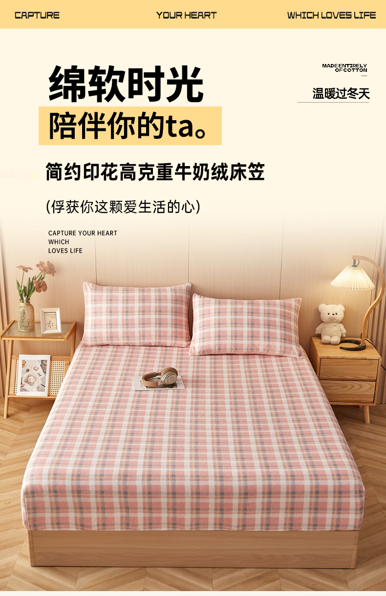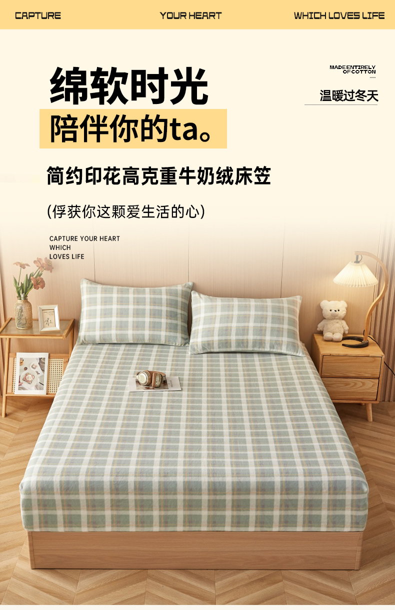 (总)一禾 2025新款简约印花高克重牛奶绒床笠