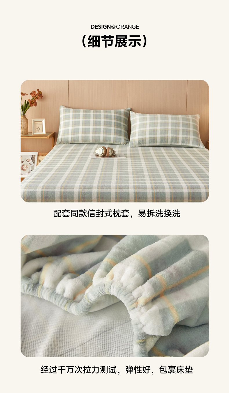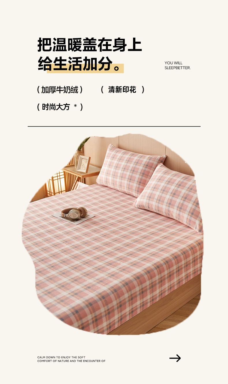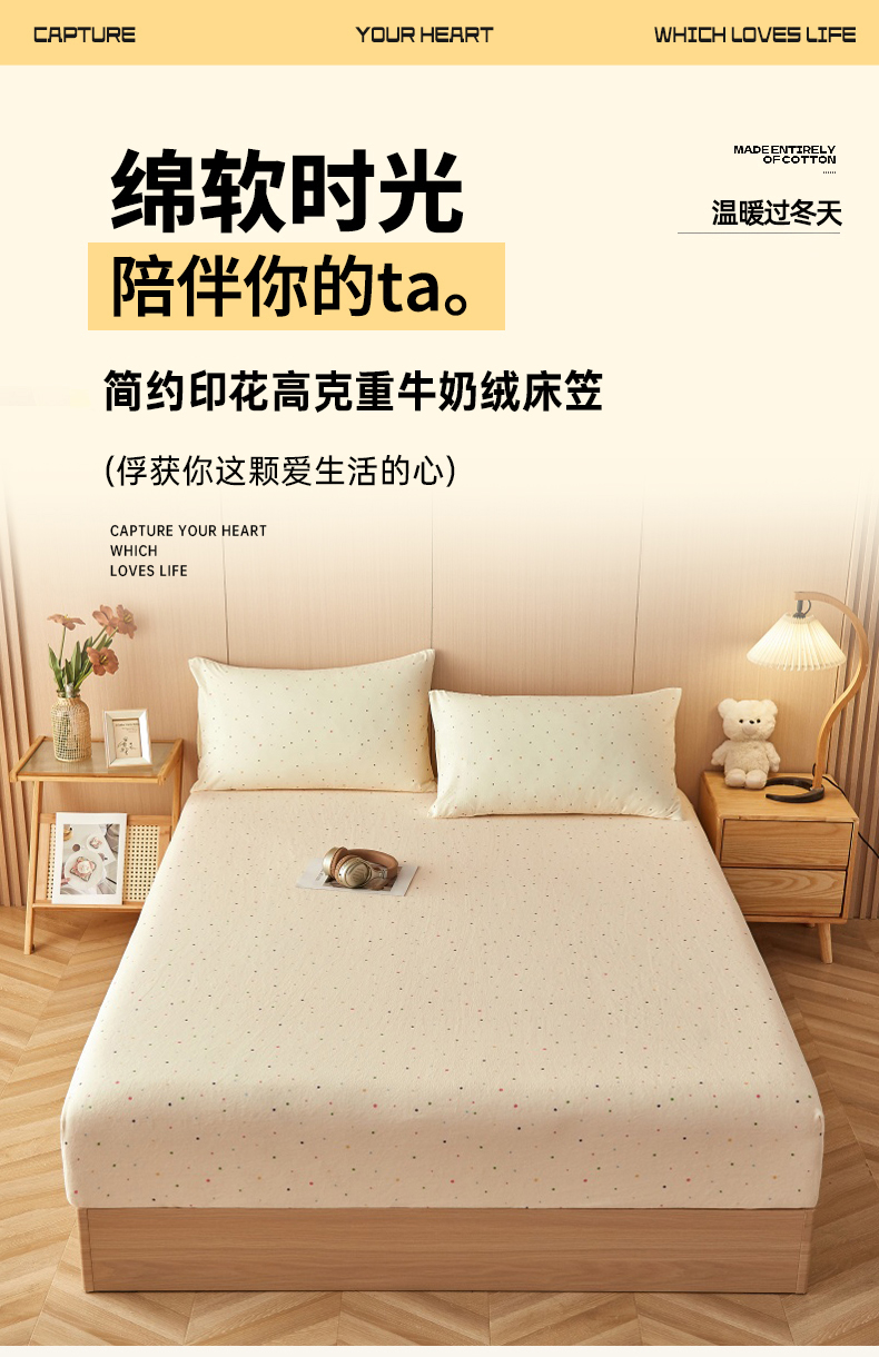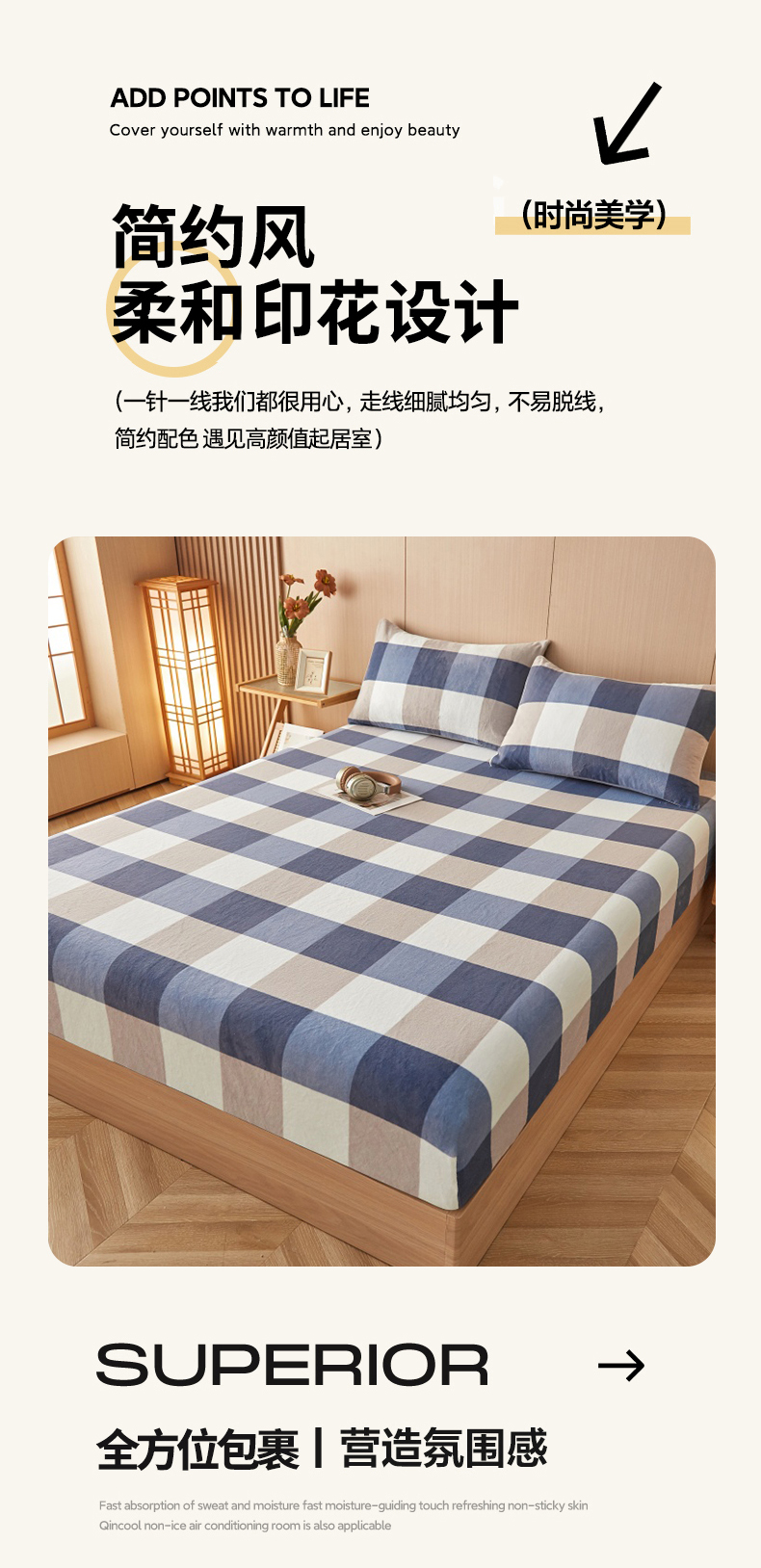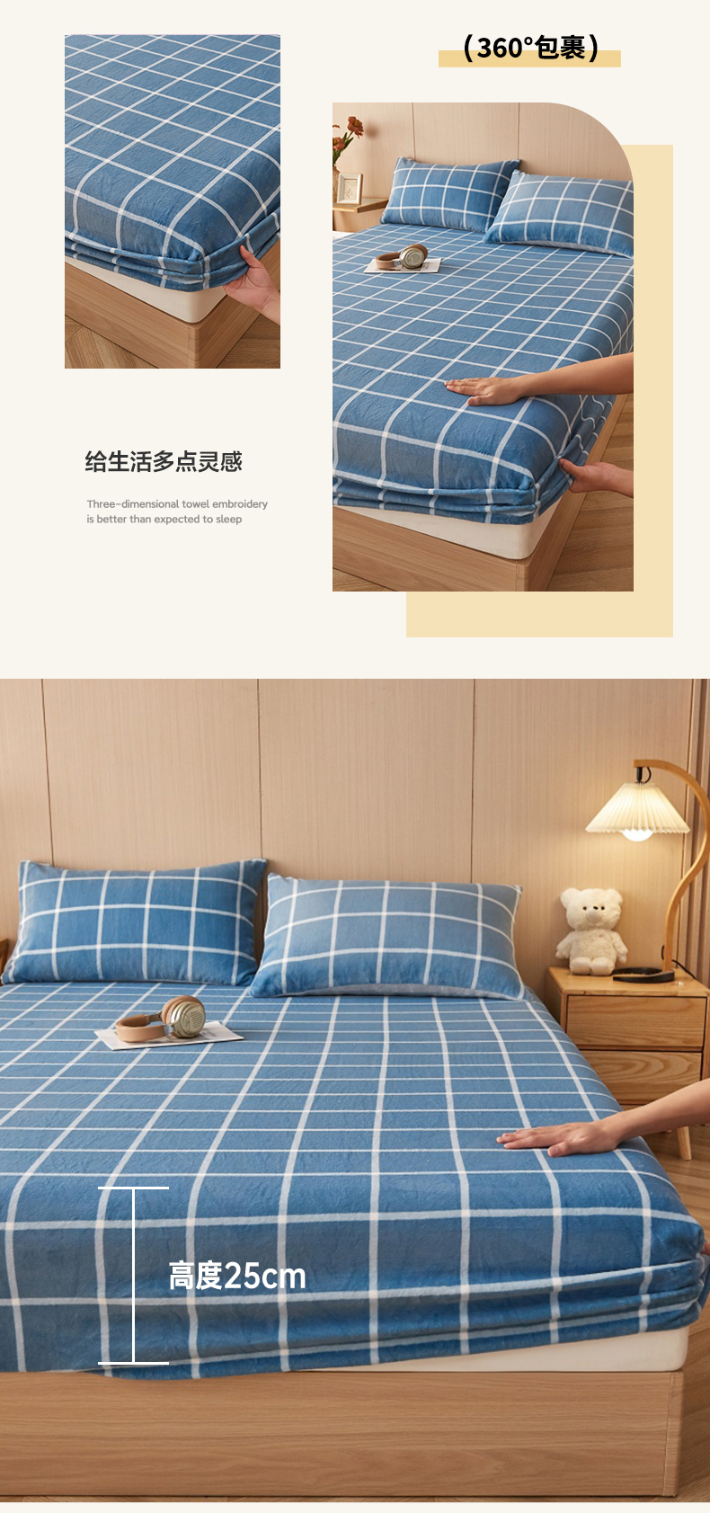 (总)一禾 2025新款简约印花高克重牛奶绒床笠