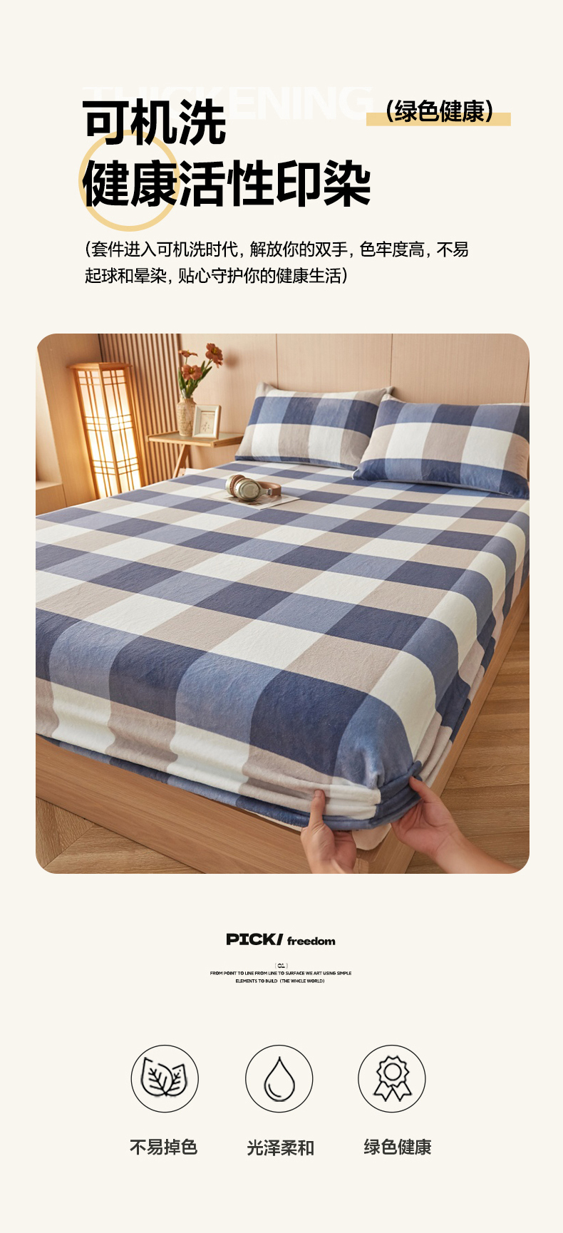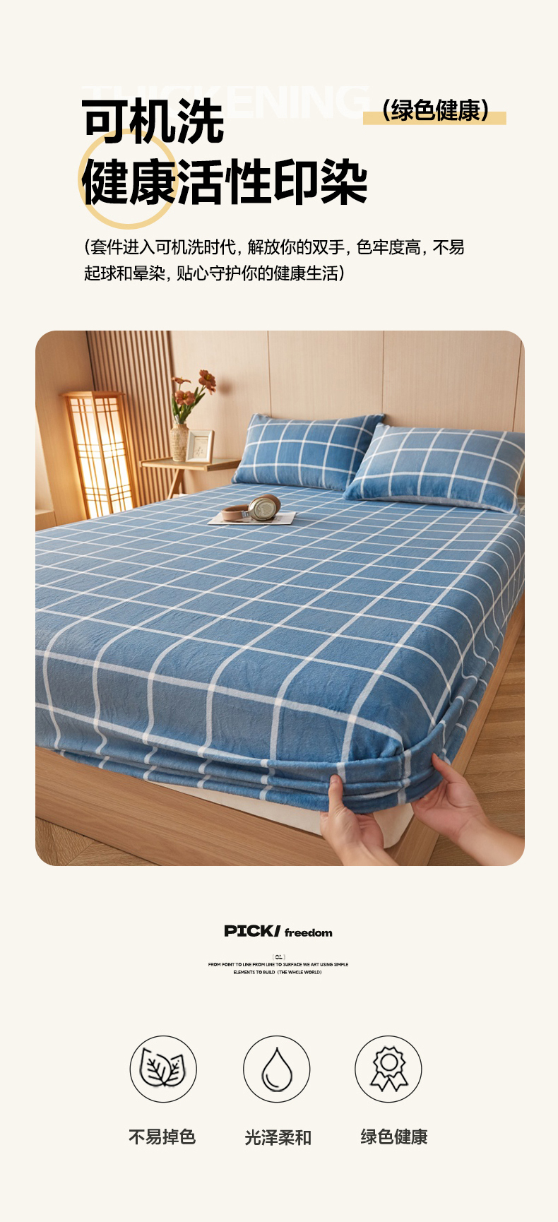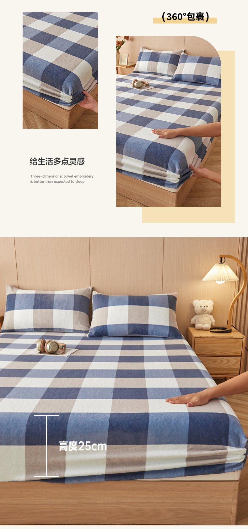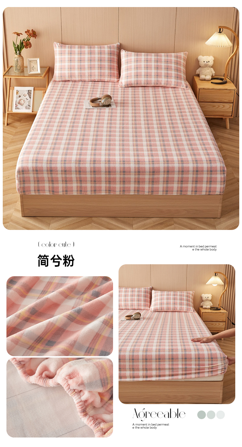 (总)一禾 2025新款简约印花高克重牛奶绒床笠