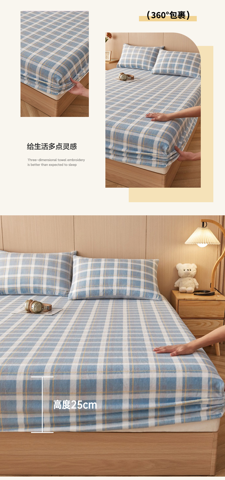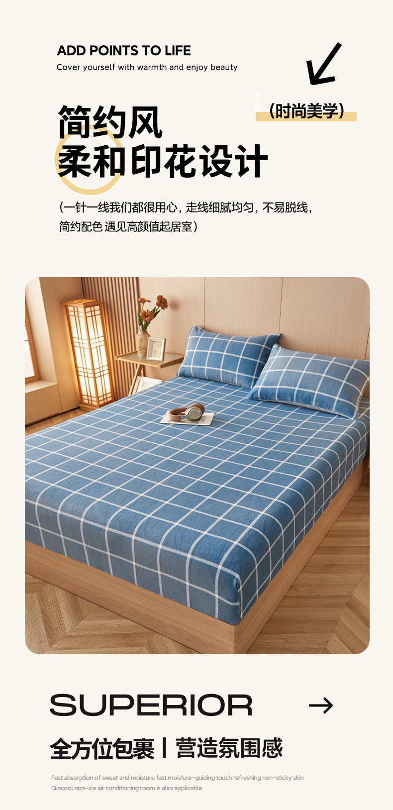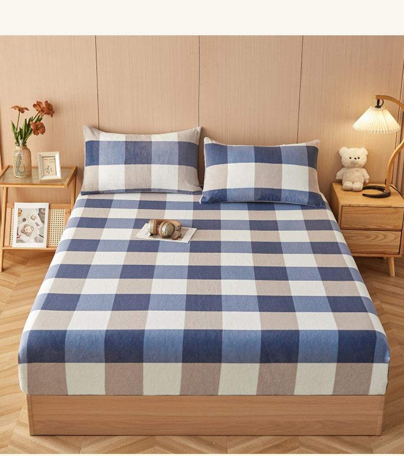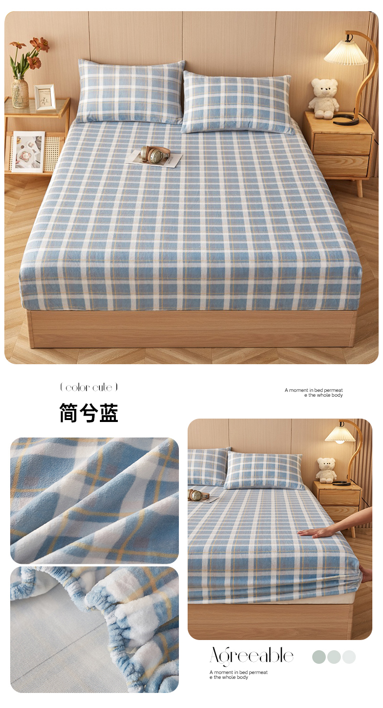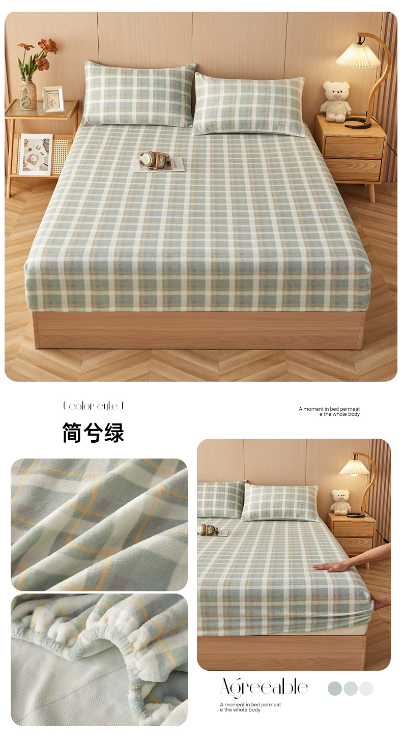 (总)一禾 2025新款简约印花高克重牛奶绒床笠