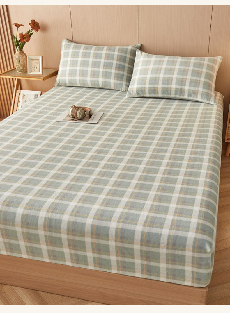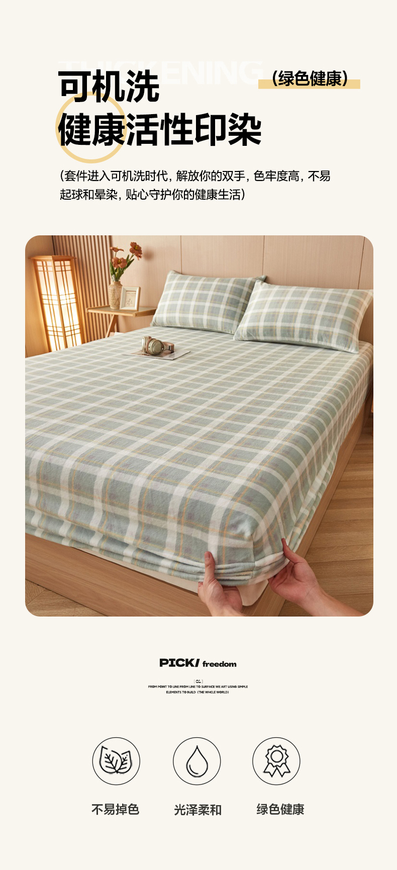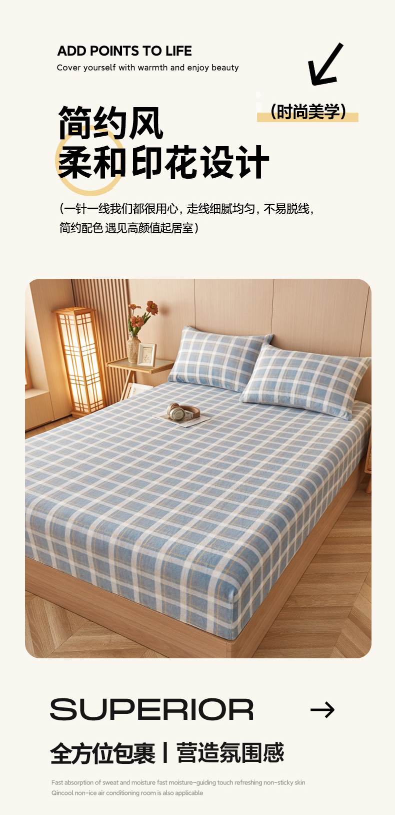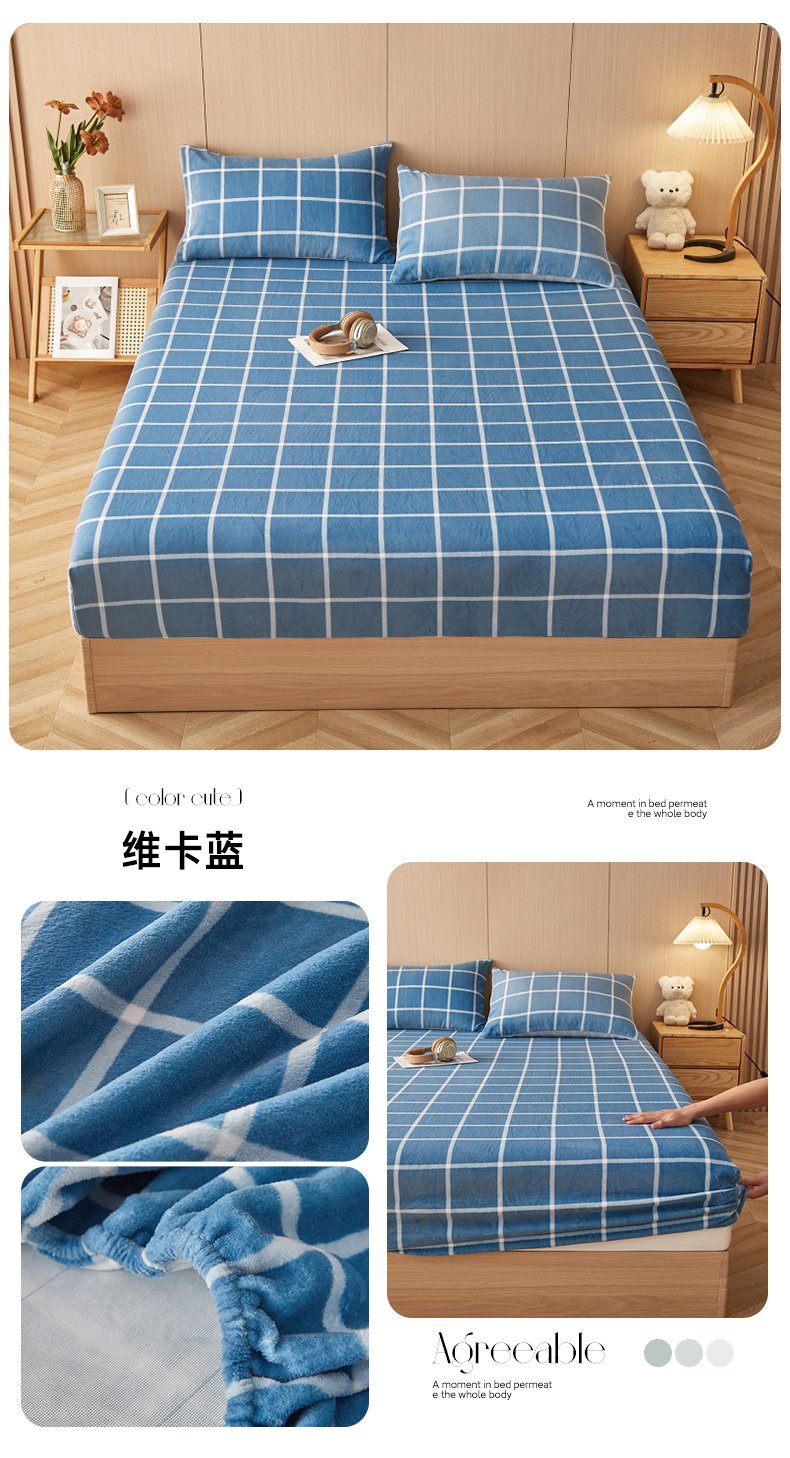 (总)一禾 2025新款简约印花高克重牛奶绒床笠