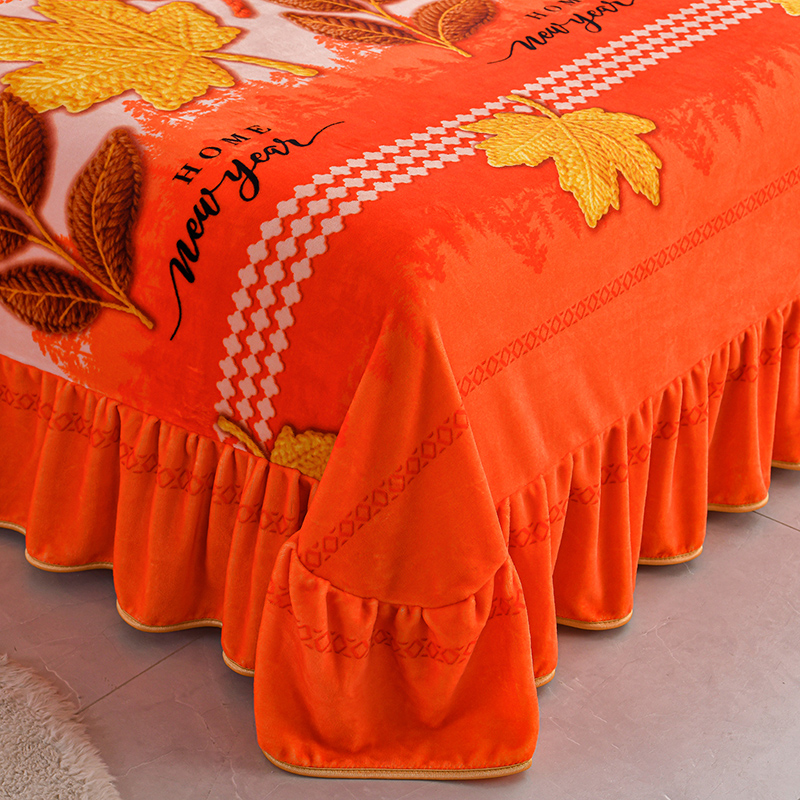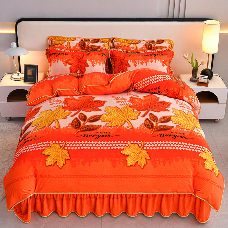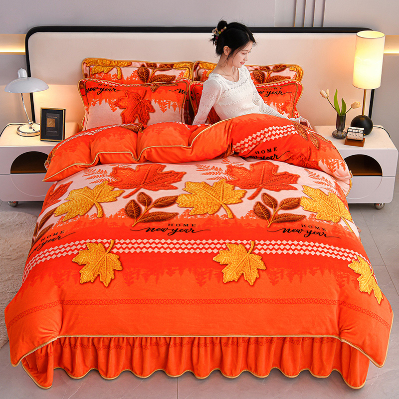 妮恒美 2025新款牛奶绒印花床裙款四件套法莱绒四件套珊瑚金貂绒四件套 一往情深