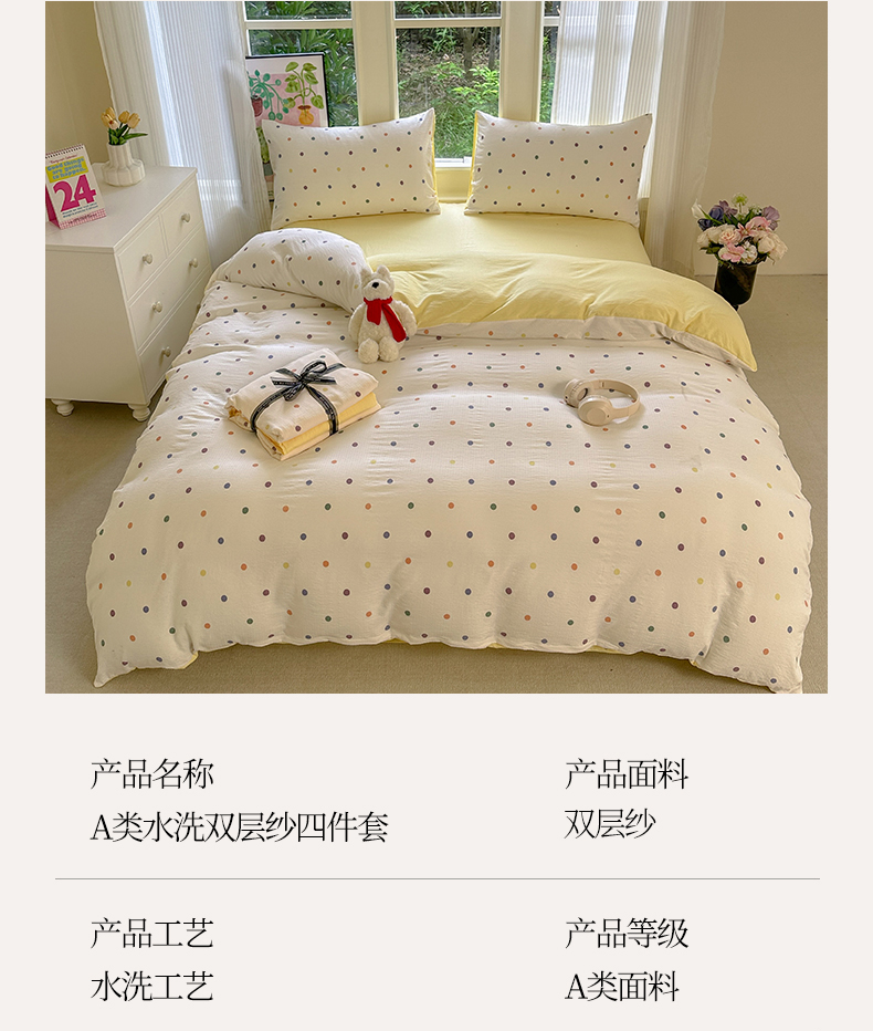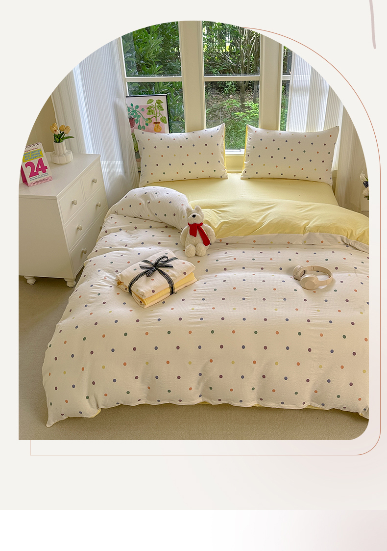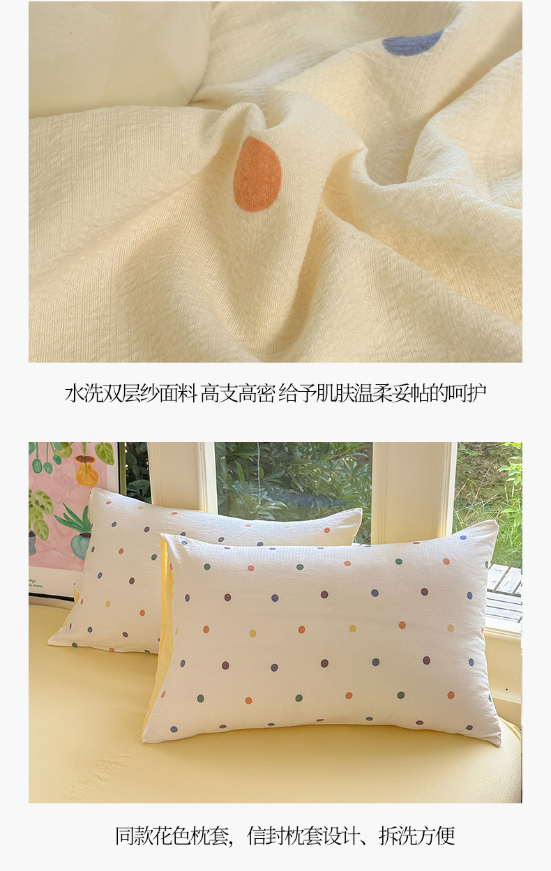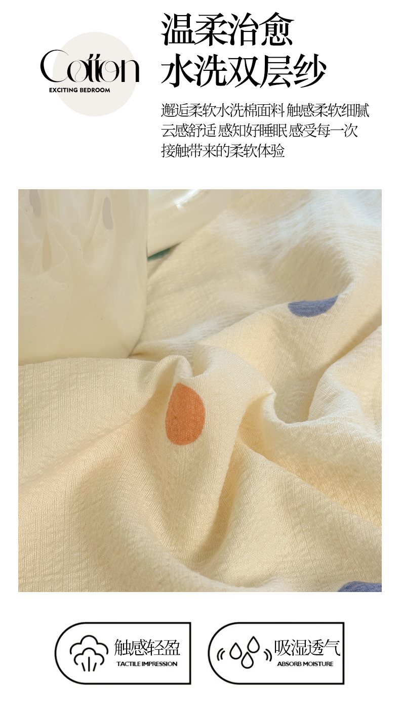 当前位置: 91家纺网 > 商品网购 > 床品套件 > 四件套 > 化纤普通四件套 > 桔禾家纺 2025新款小清新水洗棉有氧双层纱印花云感木棉皱皱纱四件套 小遇见