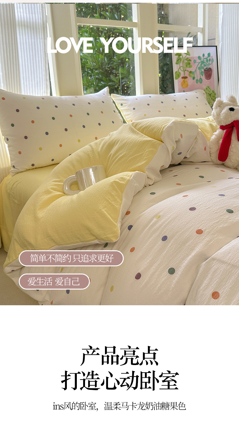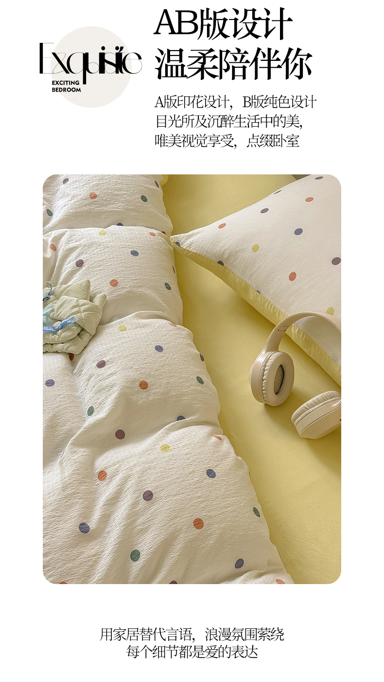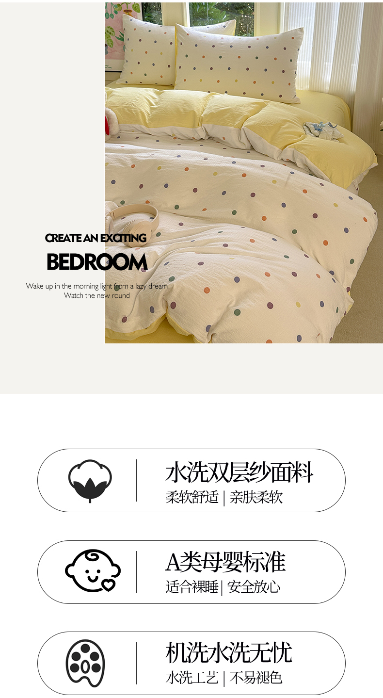 当前位置: 91家纺网 > 商品网购 > 床品套件 > 四件套 > 化纤普通四件套 > 桔禾家纺 2025新款小清新水洗棉有氧双层纱印花云感木棉皱皱纱四件套 小遇见