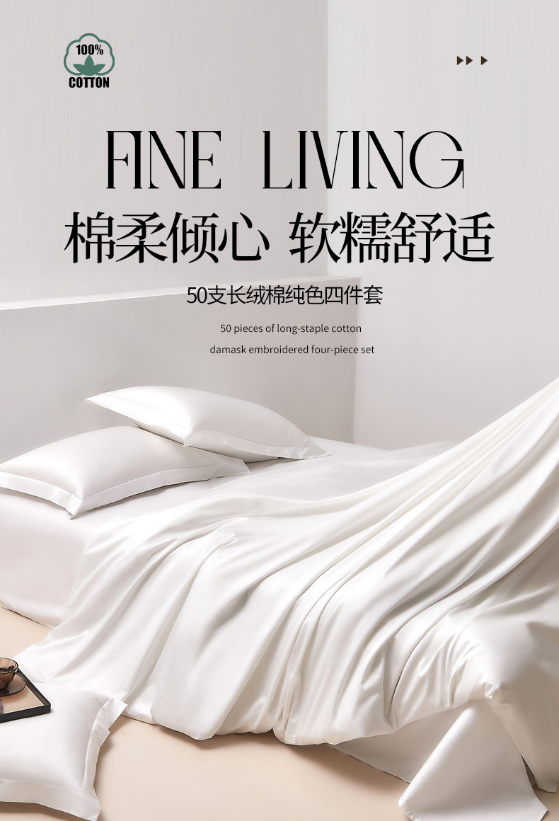 当前位置: 91家纺网 > 商品网购 > 床品套件 > 四件套 > 全棉普通四件套 > DoDo 兜兜 2026新款全棉纯棉50支长绒棉三四件套 可定做尺寸 月光白