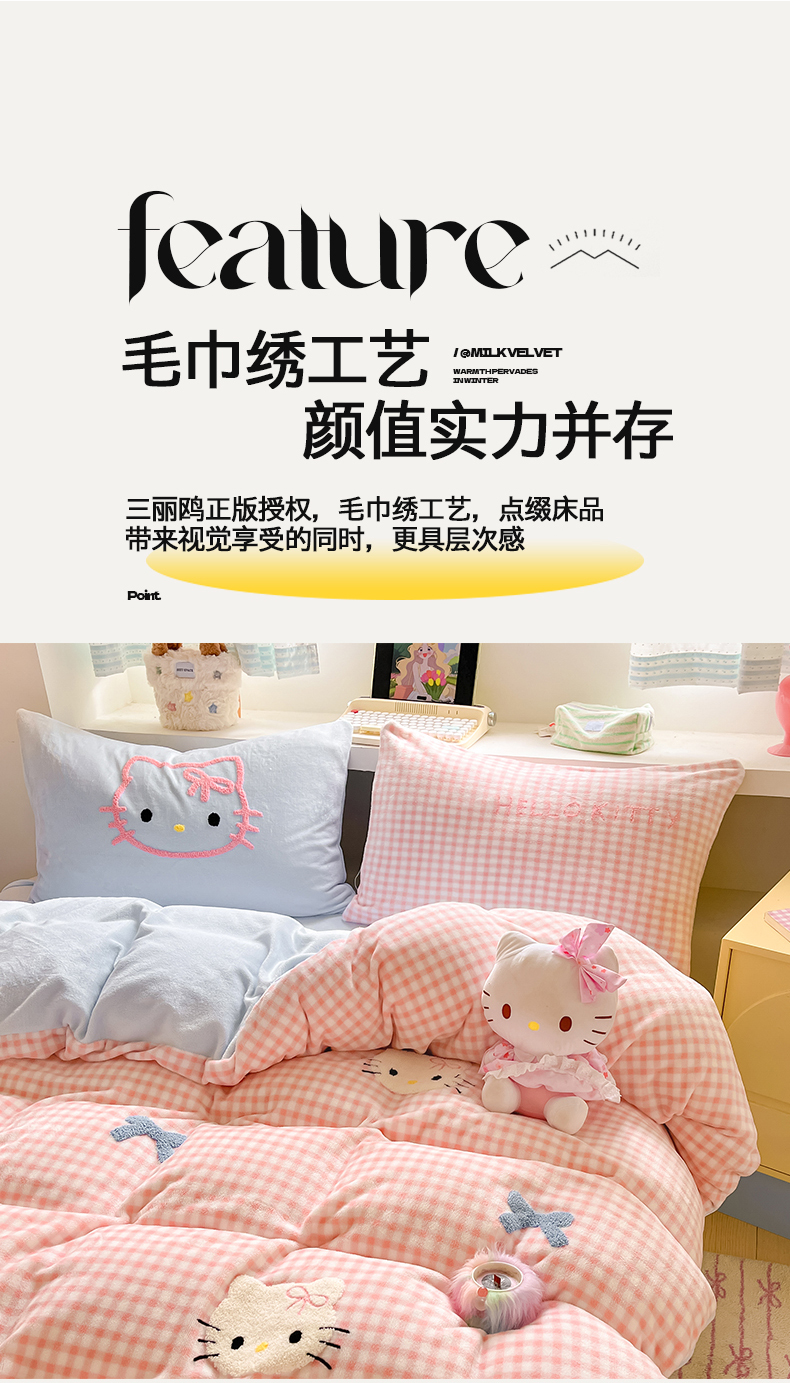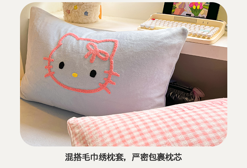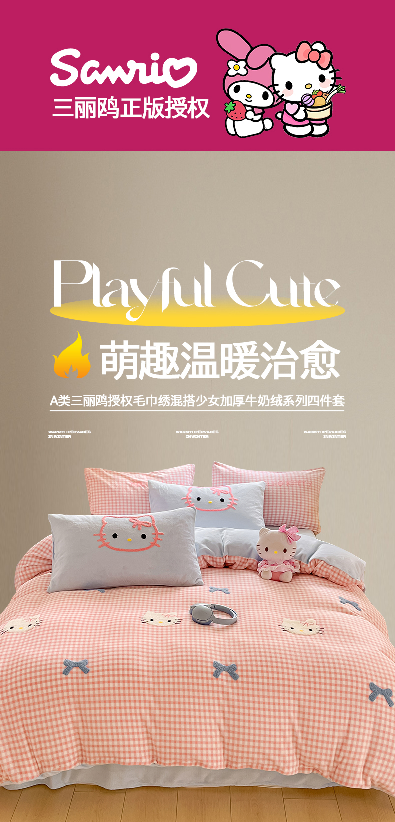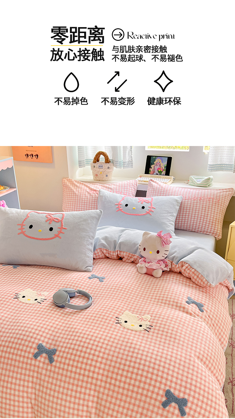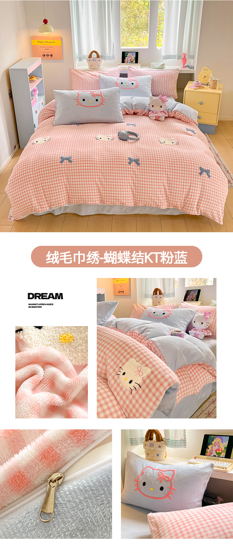 当前位置: 91家纺网 > 商品网购 > 床品套件 > 四件套 > 牛奶绒四件套 > 金爱家 2025新款A类三丽鸥授权毛巾绣混搭少女加厚牛奶绒系列四件套 绒毛巾绣-蝴蝶结KT粉蓝