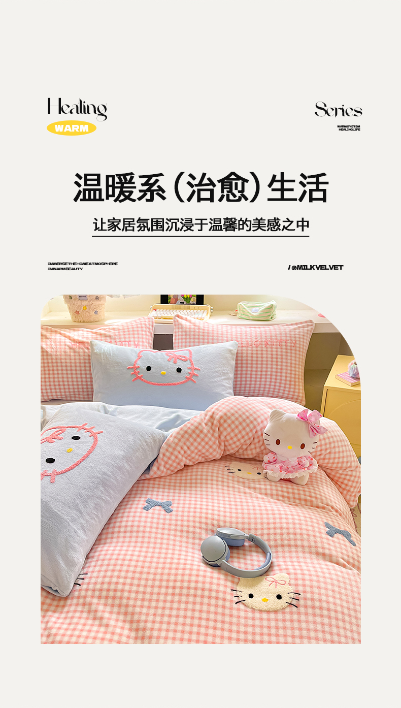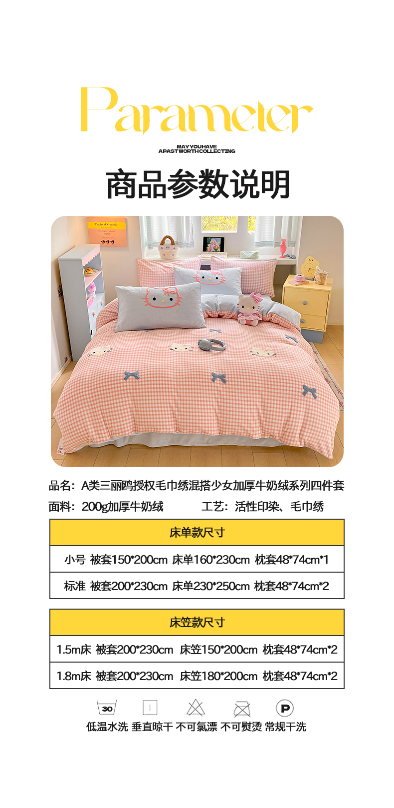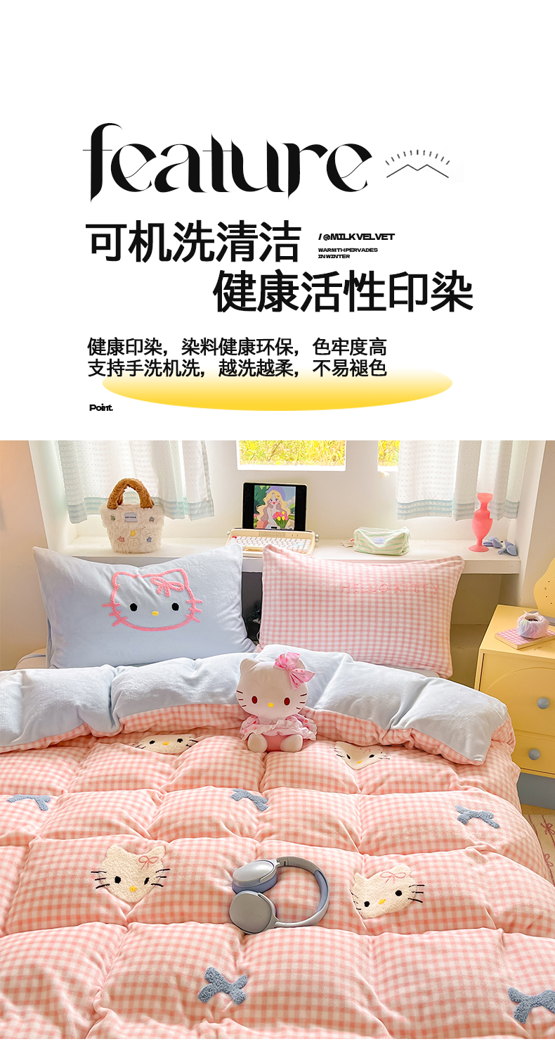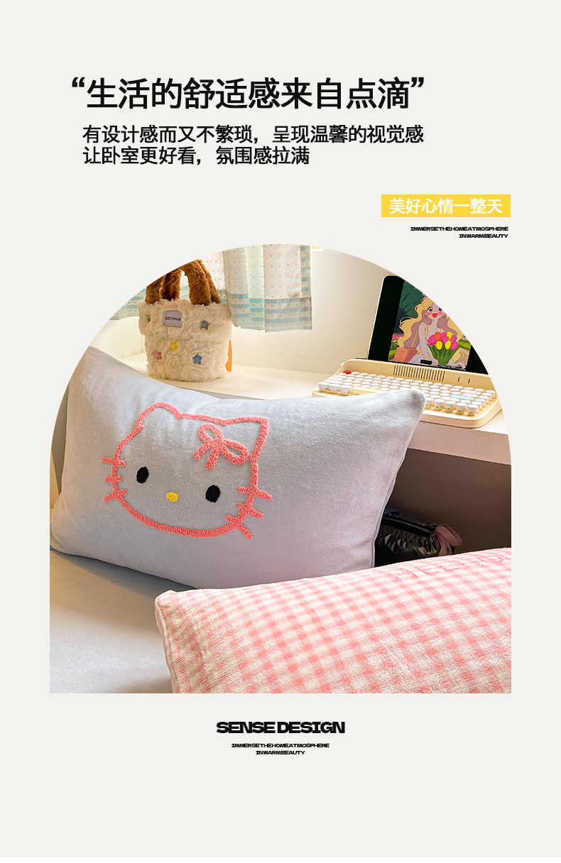 当前位置: 91家纺网 > 商品网购 > 床品套件 > 四件套 > 牛奶绒四件套 > 金爱家 2025新款A类三丽鸥授权毛巾绣混搭少女加厚牛奶绒系列四件套 绒毛巾绣-蝴蝶结KT粉蓝