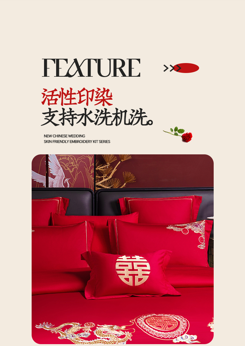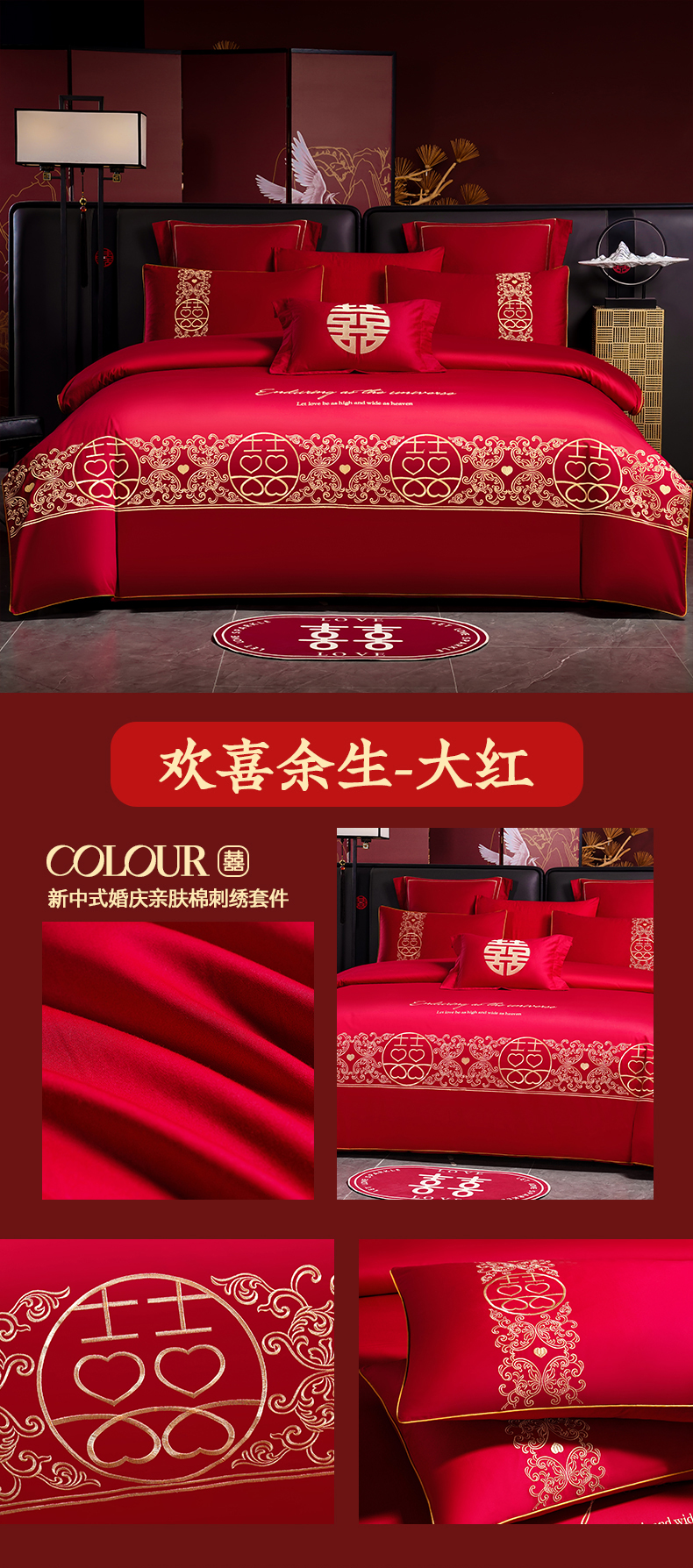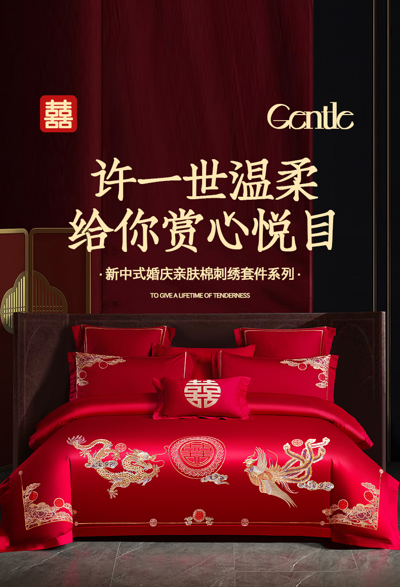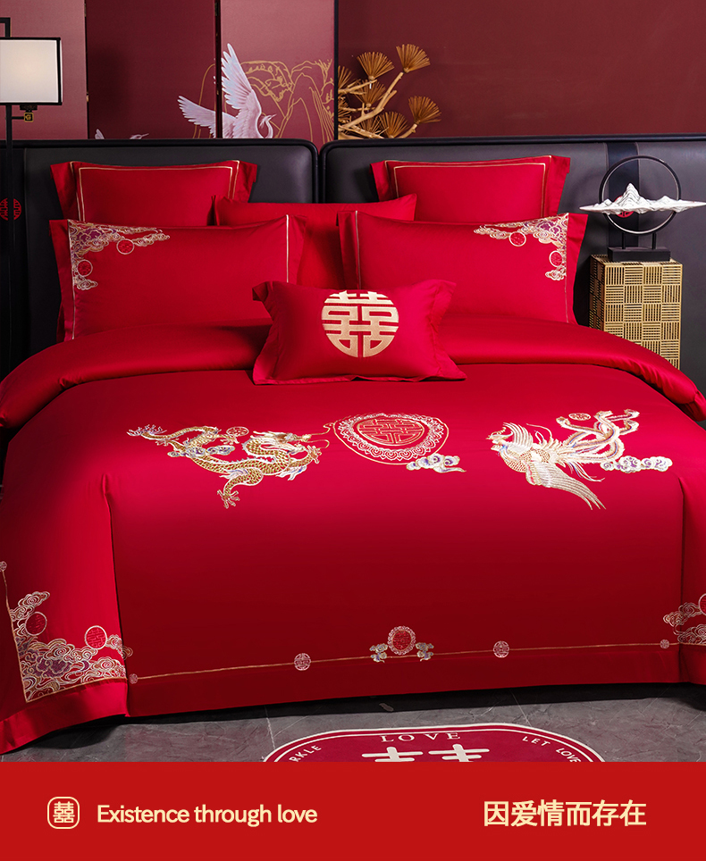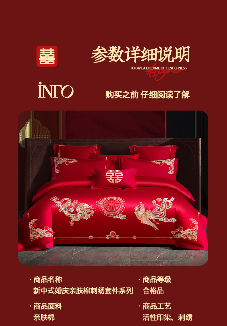 当前位置: 91家纺网 > 商品网购 > 床品套件 > 四件套 > 婚庆四件套 > 置顶家纺 2025新款新中式婚庆亲肤棉绣花四件套 龙凤瑞彩-大红