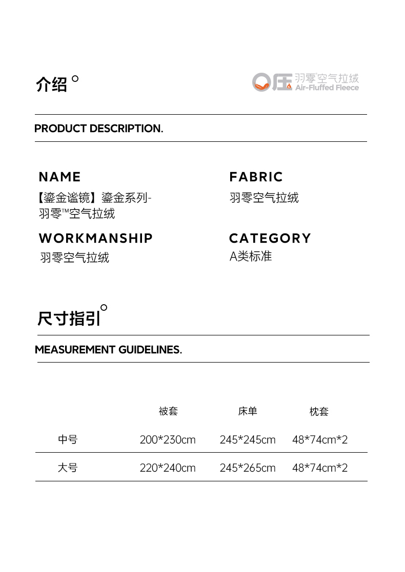 商品名称:金奇达家纺 2025新款【鎏金谧镜】鎏金系列-羽零™空气拉绒四件套