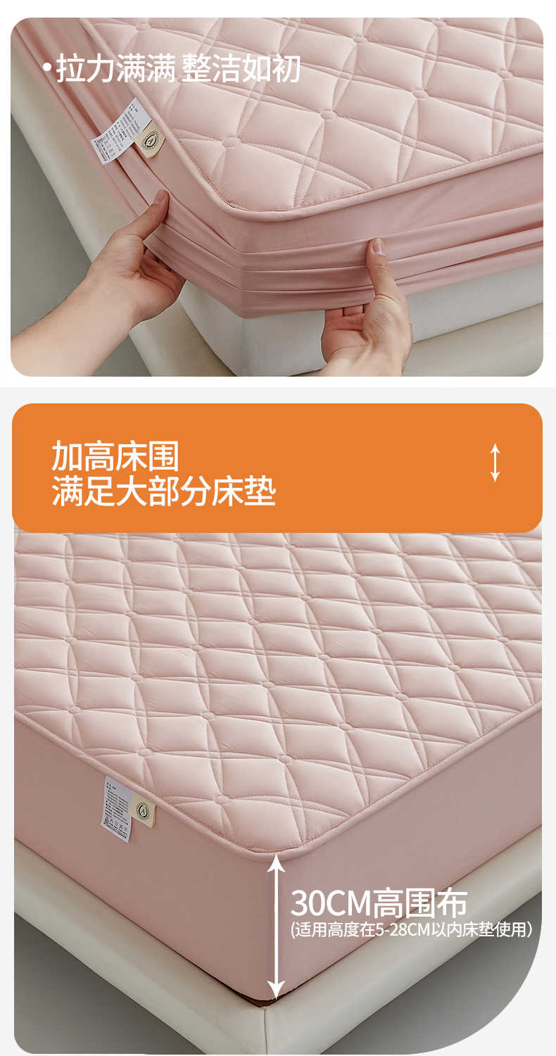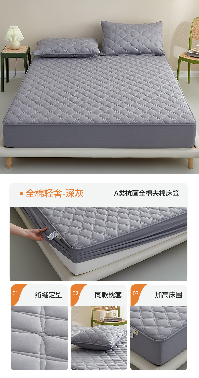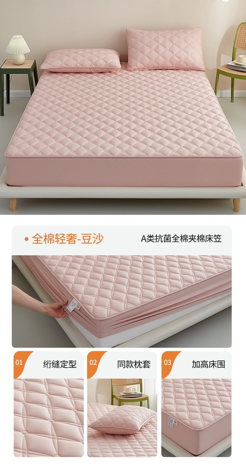 红淳家纺 2025新款A类抗菌全棉夹棉轻奢款床笠单品床笠床笠单件 全棉轻奢-豆沙