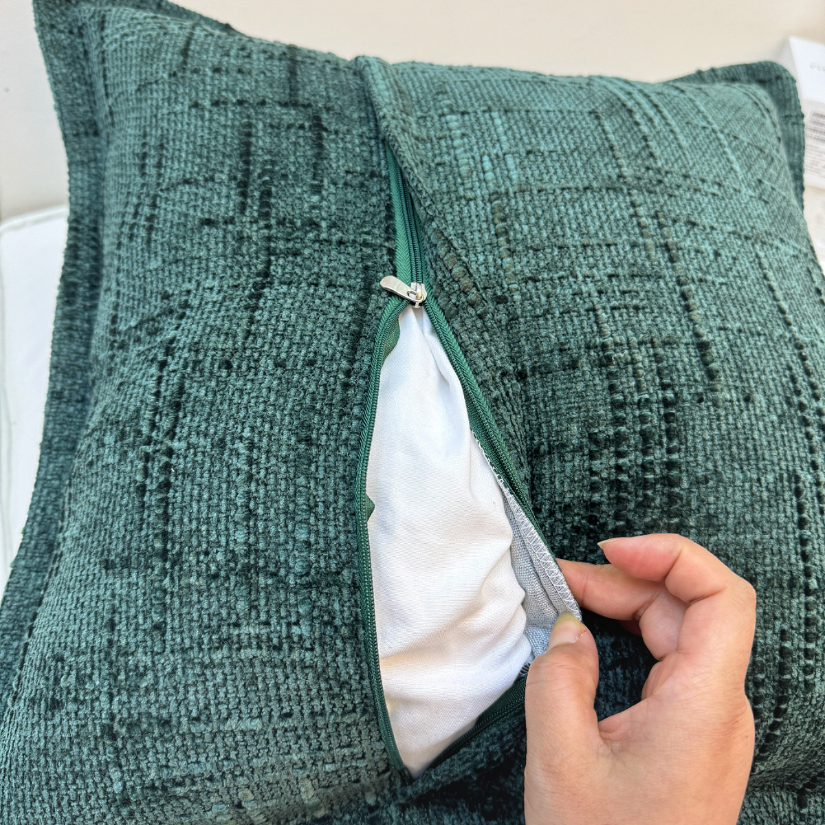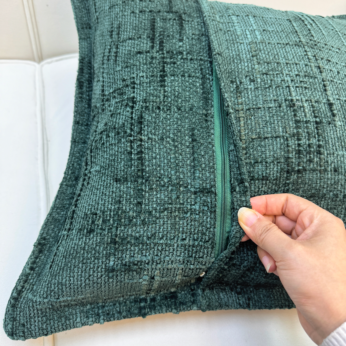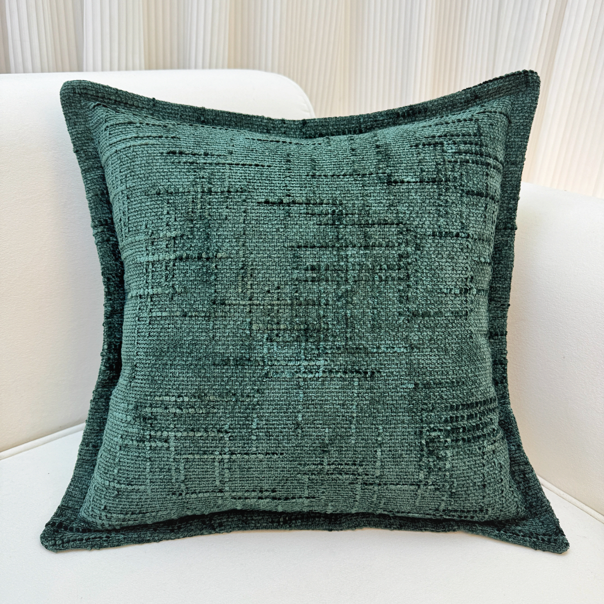 爱家居 2025新款跨境亚马逊加厚双面雪尼尔宽边枕套美式压边抱枕客厅纯色靠垫 宽边雪尼尔—墨绿