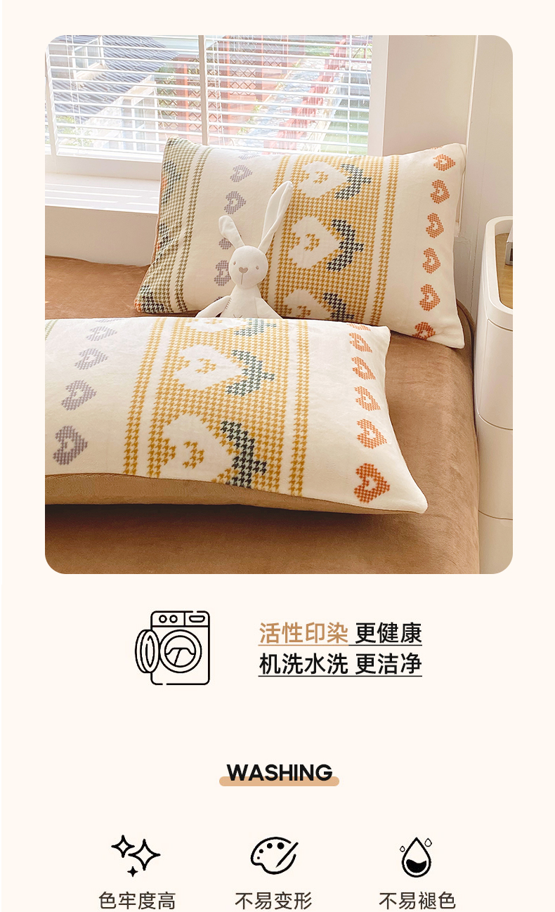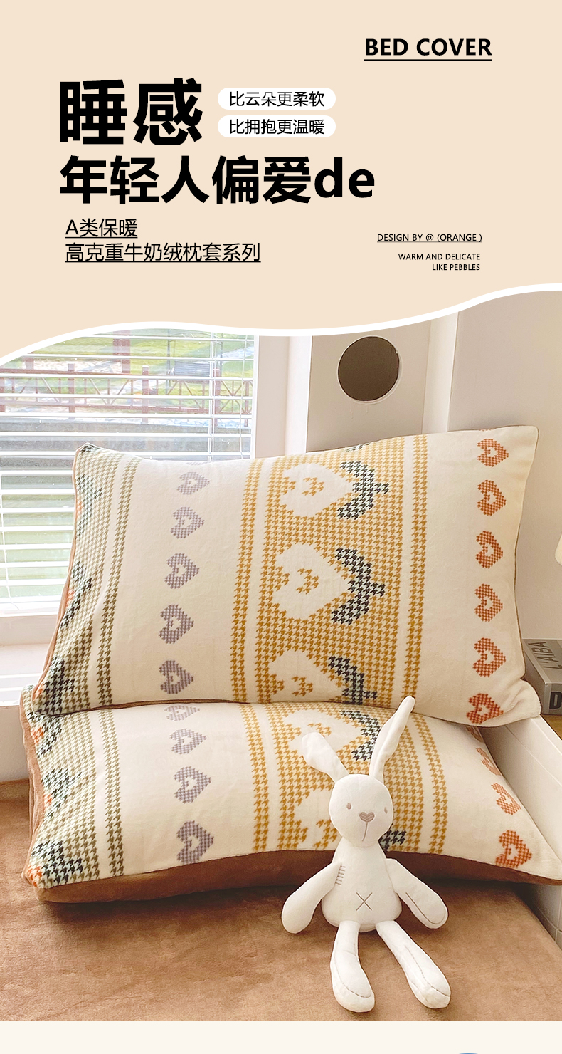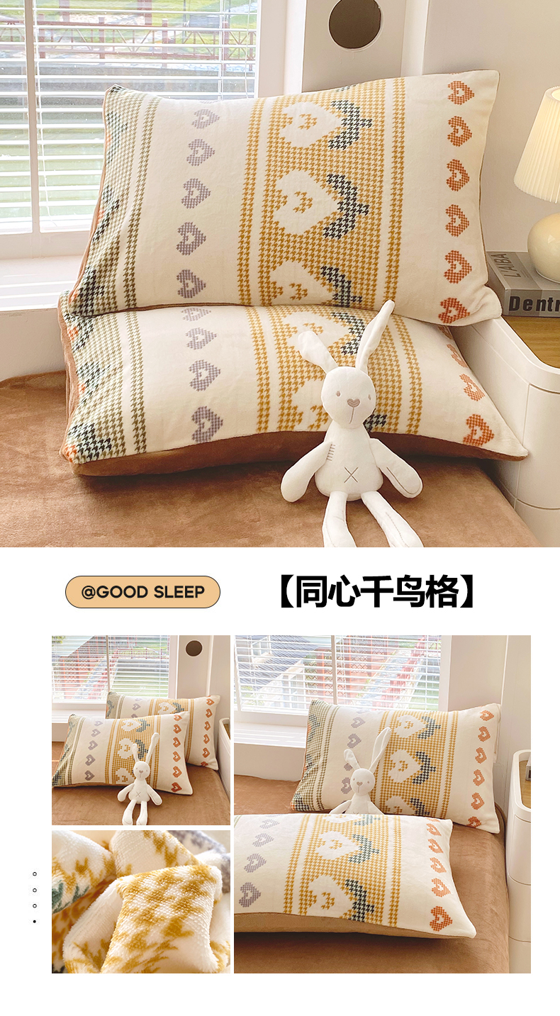 金鑫汇家纺 2025年加厚高克重A类牛奶绒单枕套 同心千鸟格