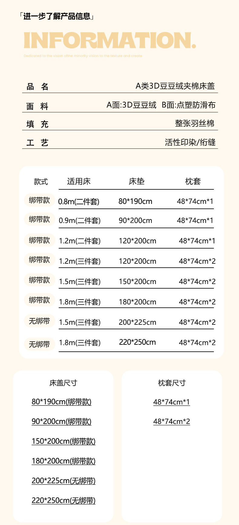 200x220cm+枕套一对(没有绑带) | ¥61.00 |