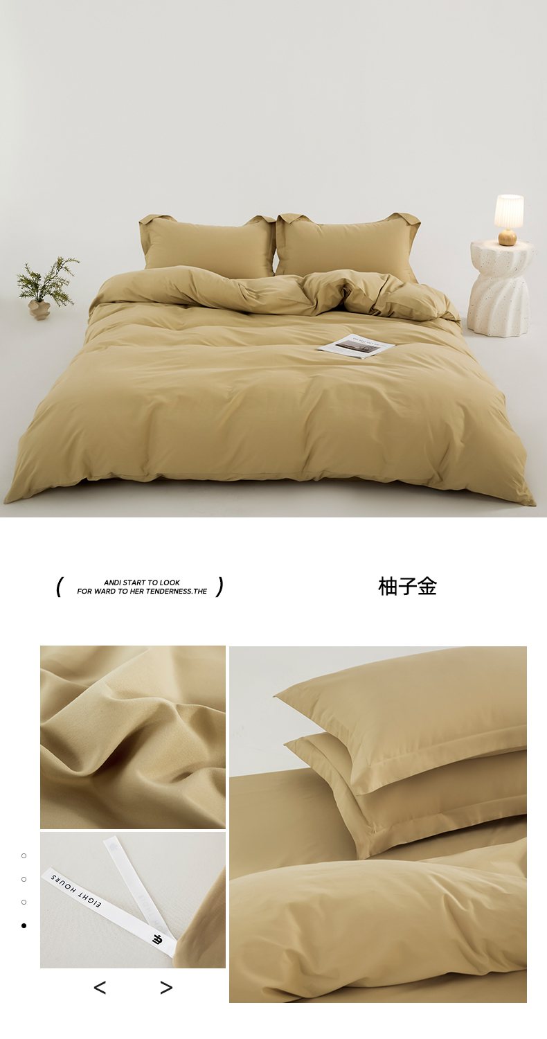 商品名称:红淳家纺 2025新款50支长绒棉贡缎磨毛单枕套系列 柚子金