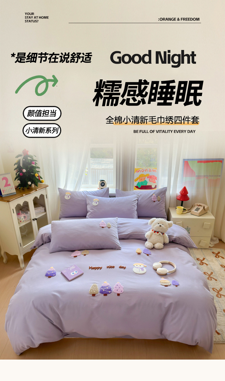 (总)如意朵 2025新款13372全棉毛巾绣小清新四件套(专版花型),彩色星星,躲猫猫,狗狗家族,卡皮家族,猫咪家族,美好时光,萌宠乐园,小伙伴,柿柿如意,小甜品,诸事顺意,一起嗨,小红猫,企鹅抱抱,小企鹅,魔法师