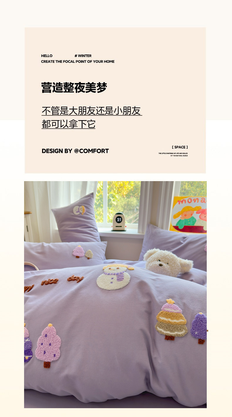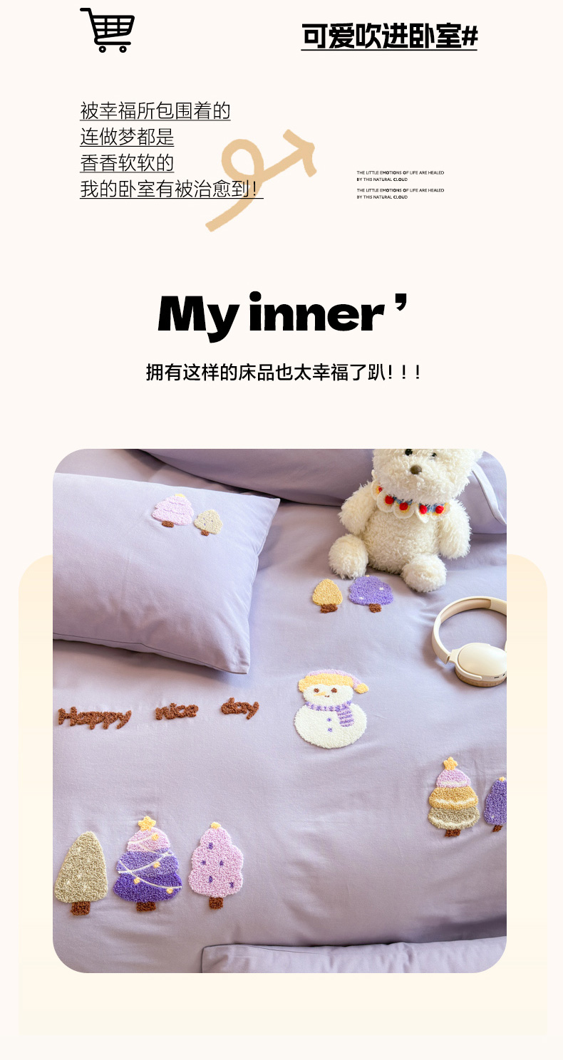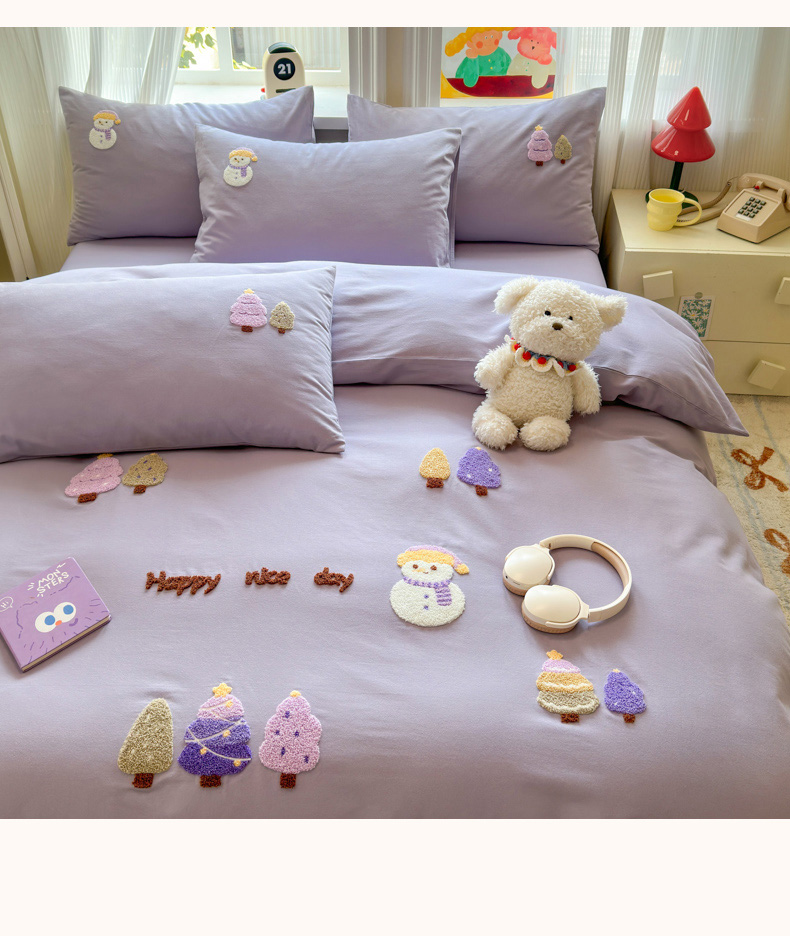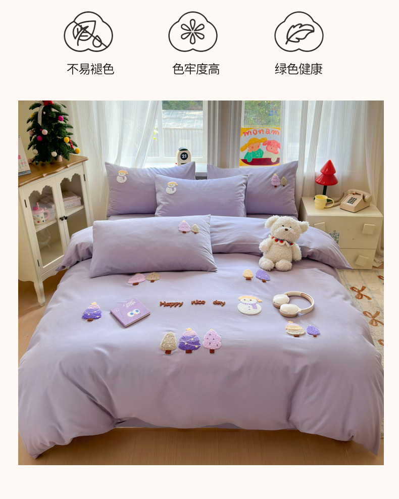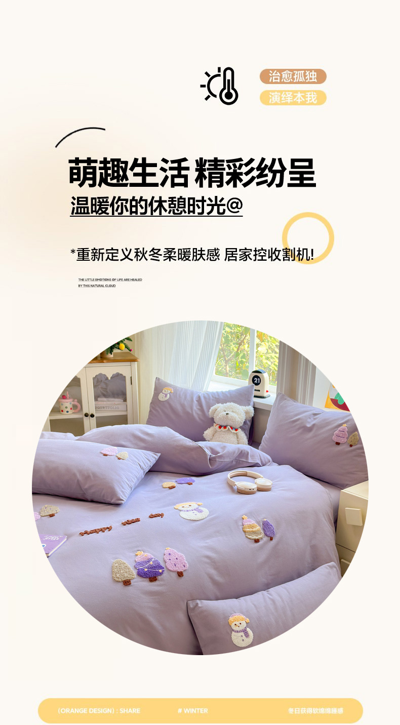 (总)如意朵 2025新款全棉加厚磨毛绣花四件套风格二(专版花型),梦幻森林紫,马到橙功,猫和树,梦幻森林米,圣诞心语,狮来运转,时尚猫咪,甜心狗狗,童话世界,追梦企鹅蓝,追梦企鹅米