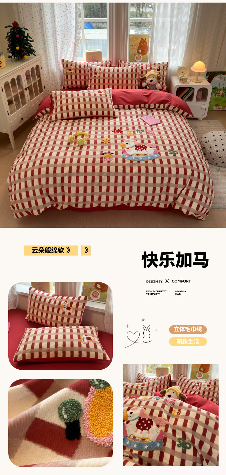 (总)如意朵 2025新款全棉纯棉提花水洗棉绣花四件套(专版花型),开心丫,三只小狗,三只小猫,贪吃卡皮,休闲小猫,抓星熊