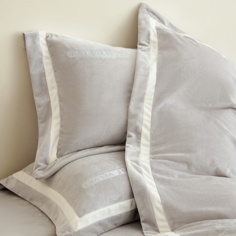 淼铭家纺 2025秋冬新款婴肤绒双拼绣花四件套-雅韵系列 雅韵灰
